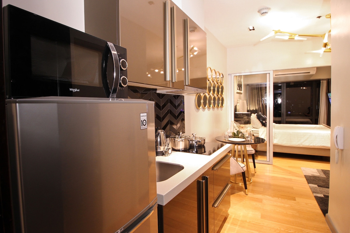 ¡Bienvenido a nJoyHomes en Manila, a un paseo en ascensor del Gran Canal de Venecia! Nuestro apartamento estudio de 40 m2 recién renovado con terraza tiene todo lo necesario para una estancia fantástica. - Cama tamaño queen. - Aire acondicionado. - Terraza con zona de estar. - Baño con ducha abierta. - Smart TV con NETFLIX. - Café sabroso. - Cocina totalmente equipada. - Piscina. - Gimnasio. ☆«El apartamento tiene una vista preciosa, está impecable y está está amueblado de forma muy cómoda».