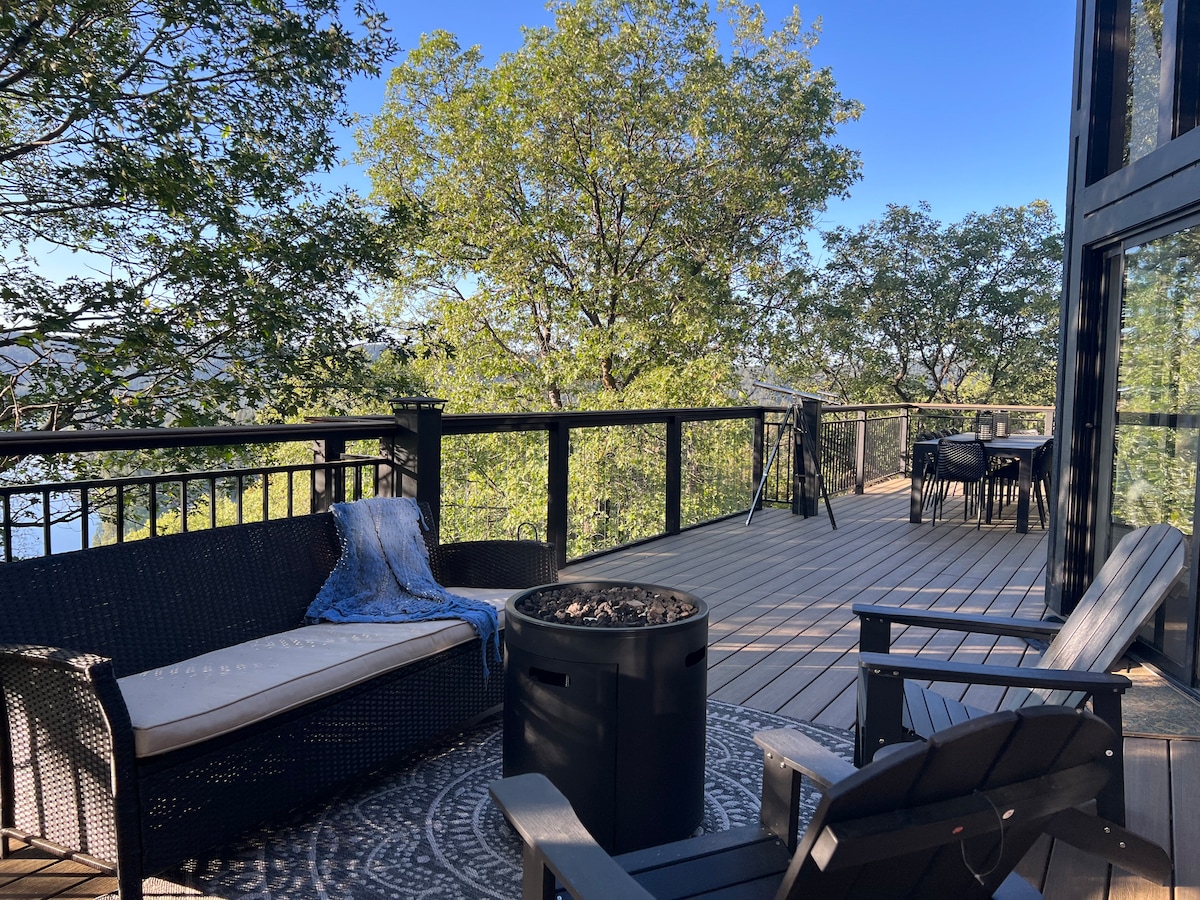 Moderna cabaña con impresionantes vistas y fogata al aire libre