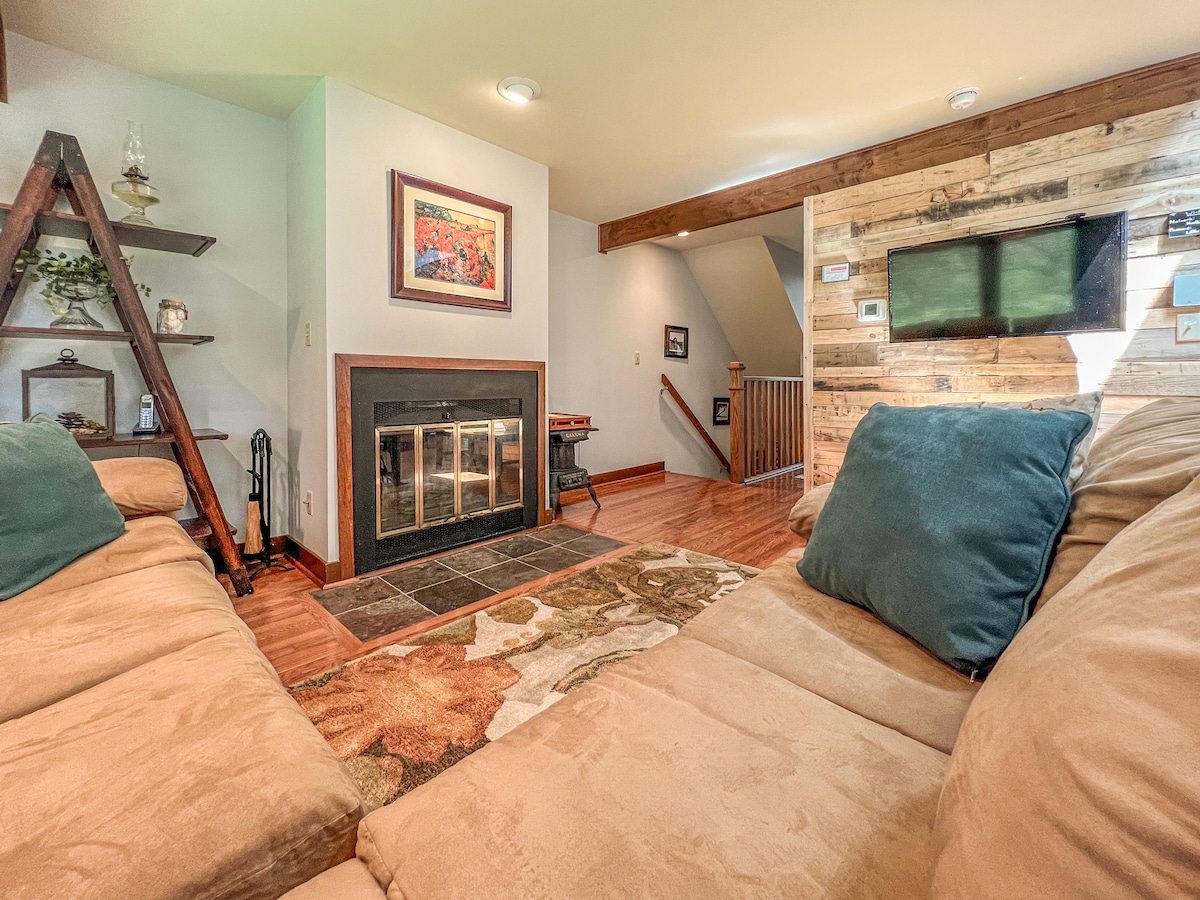 Esta casa adosada de 2 pisos y 2 dormitorios más loft reformada se encuentra en el territorio de Galena, una zona turística de 6800 acres con hermosas colinas, 24 millas de senderos para caminar, campos de golf y servicios. Situado en las casas adosadas de Creekwood, se encuentra a menos de 4 minutos en coche de Country Store, Highlands Restaurant y Thunder Bay Falls. Relájate y desconecta en este alojamiento tranquilo y moderno.