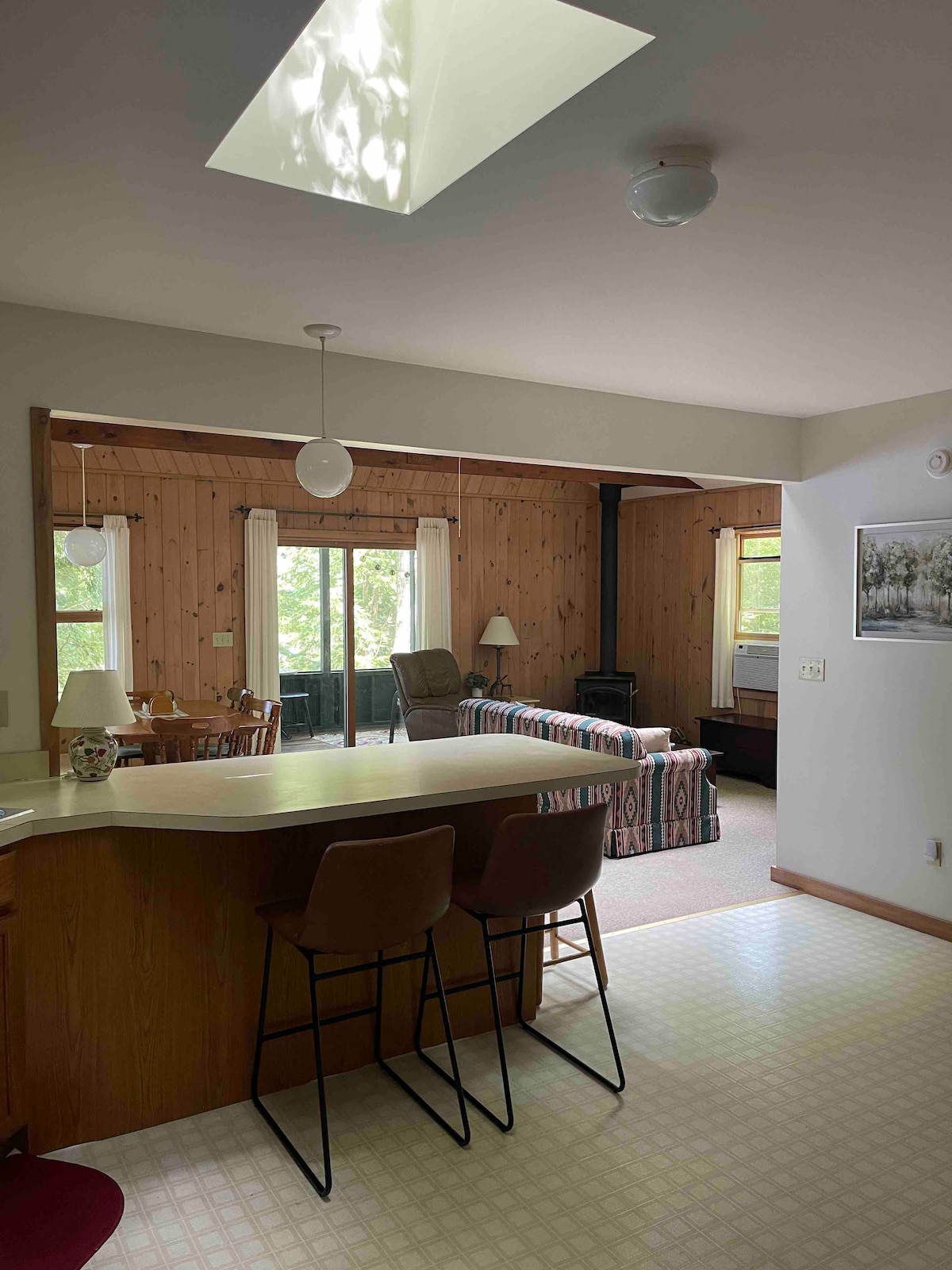 Escápate a una cabaña tranquila y acogedora en Dream Lake, un refugio ideal para quienes buscan tranquilidad. Ubicado a 10 minutos del pueblo de Lake George, este refugio ofrece una mezcla perfecta de aislamiento tranquilo y fácil acceso a Lake George, Saratoga y Glens Falls. Disfruta de hermosas vistas desde el porche, patio privado y acceso al lago, fogata y parrilla. Esta es una escapada perfecta para cualquier temporada, especialmente para aquellos que disfrutan de estar en la naturaleza. Cocina completa, baño completo, lavandería, camas supletorias proporcionadas