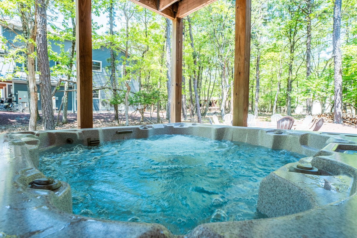 Our special place is close to everything for your Poconos visit! Make memories at our unique Mountain & Lake Home. Free access to a zero gravity, full body massage chair as you relax. Short walk into lake harmony beach, indoor waterpark & pools right there! Golf course right off our backyard. Skiing in only 7 minutes! Enjoy a private hot tub, full range of games & arcade systems for your family sleeping up to 10. Enjoy covered porch, gazebo, grilling, large outdoor dining & large fire pit area!
