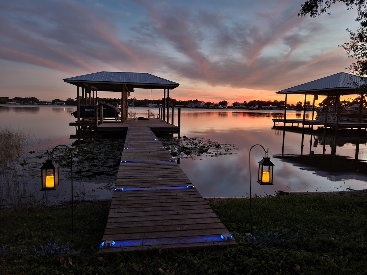 Oasis en el lago con piscina y muelle para barcos en Lake June
