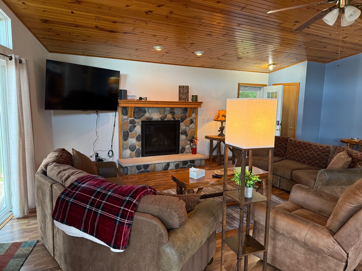 La casa de huéspedes está pintada para parecerse a un refugio escandinavo. Completa con dormitorio separado, sofá cama tamaño queen plegable adicional, cocina pequeña, estufa de leña, wifi (¡lo mejor que podemos encontrar, pero no es genial!) y televisión grande (DirecTV), es una gran escapada para una pareja o una familia. Los propietarios viven en la propiedad por si necesitas algo. Si eres un poco aventurero, podemos montar una tienda de campaña justo al lado del lago Superior. Toda la propiedad es para no fumadores. Para una estancia tranquila, no hay motos de nieve ni vehículos todoterreno.