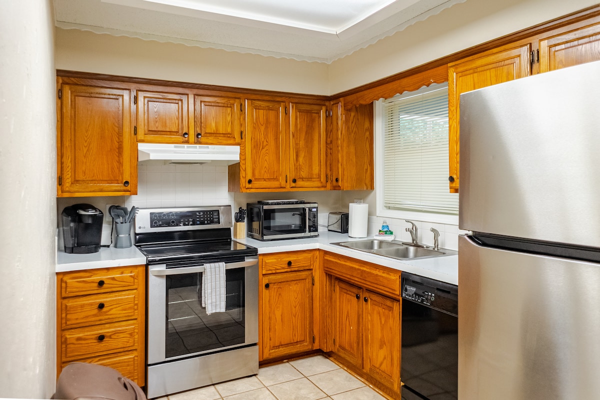 El Treehouse Bungalow fue renovado y diseñado personalmente por sus anfitriones, Steve y M, durante el último año. Todos los espacios son nuevos y emanan comodidad y paz. Desde la acogedora sala de estar con chimenea eléctrica hasta la espaciosa terraza frente al bosque. Encontrarás varias áreas separadas para hacer tuyas. Te animamos a que te tomes un descanso en la bañera de inmersión o cojas un libro y te relajes en la cama tamaño king del dormitorio principal. Los senderos para bicicletas, el campo de golf y los lagos están por todas partes. ¡Ven a visitar NWA y sé nuestro huésped!