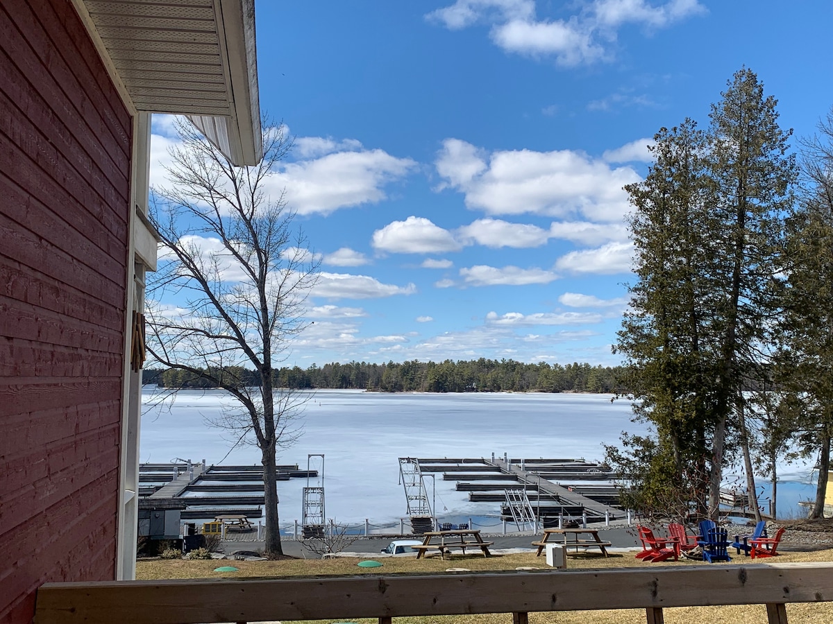 ¡Disfruta de las vistas panorámicas del lago Lower Buckhorn con la familia! Relájate en el jacuzzi sobre las rocas del Escudo Canadiense, entre altos pinos. Esta cabaña frente al mar recientemente actualizada cuenta con 3 dormitorios y un concepto de espacio de estar abierto. ¡Más de 280 pies de frente al mar para que disfrutes del amanecer y el atardecer y pesques en el muelle! Ponte en contacto con nosotros en el sofá, juega o mira las películas. Date un paseo por toda la isla. Wifi de alta velocidad para trabajar o jugar. A 6 minutos de la ciudad, a menos de 2 horas de GTA.