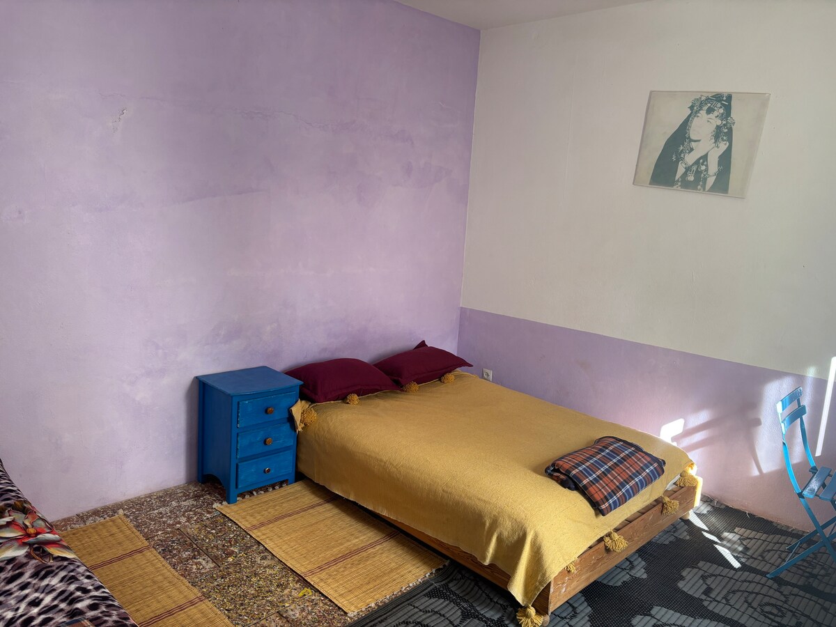Dé Ici, vous ne venez pas seulement séjourner… vous vivez Mirleft et vous vous sentez comme un local. Maison de plain-pied en plein centre bien équipée lave linge…, entièrement à votre disposition . Chambre lumineuse, salon cuisine équipée lave vaisselle … et salle de bain fonctionnelle. Wi-Fi haut débit, eau chaude, Smart TV et parking gratuit. Idéal pour couples, familles et voyageurs en quête d’authenticité.