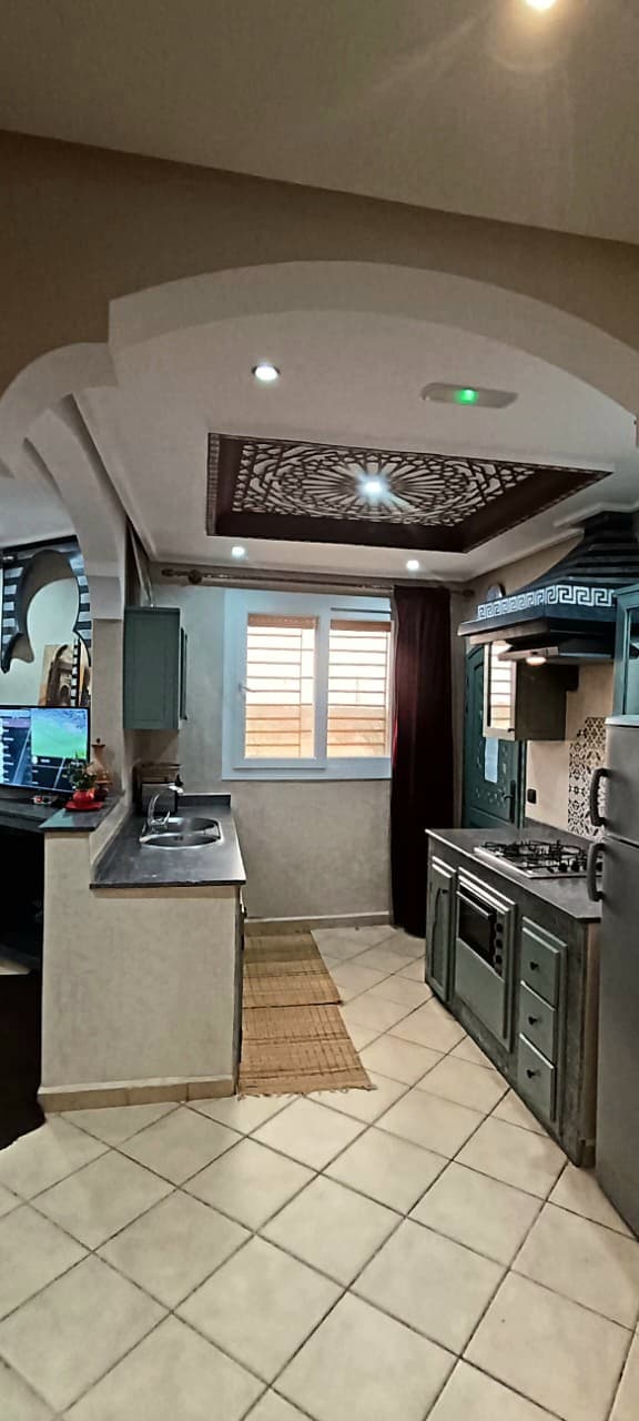 Un apartamento en la planta baja con una superficie de 100 m que contiene 2 dormitorios, 2 baños, una sala de estar, una cocina y un (URL OCULTA) pequeño jardín delante de la casa. Estilo Tadlakt y arcada que le da al apartamento un encanto tradicional. Se encuentra en una zona tranquila cerca del mar.