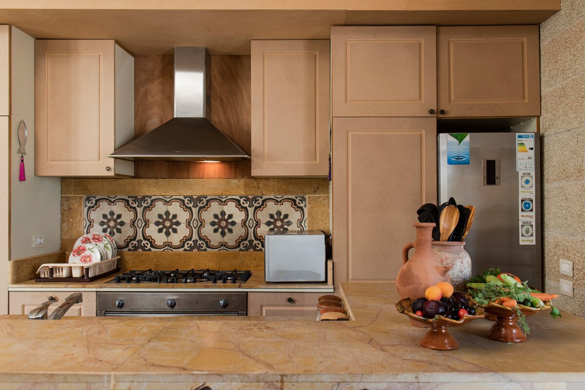 ¿Sueñas con unas vacaciones brillantes en uno de los pueblos más bonitos del Líbano? ¡Beit El Deir es el lugar ideal para ti! Esta villa privada de piedra bellamente decorada en Deir El Qamar ofrece un maravilloso lugar montañoso para conectar con la naturaleza y disfrutar del aire fresco. ¡Disfruta de nuestra piscina infinita con vistas al histórico palacio de Beiteddine! A minutos de restaurantes y museos. Perfecto para familias, grupos, reuniones de parejas y amigos para emocionantes fiestas de barbacoa, cenas, noches suntuosas y almuerzos.