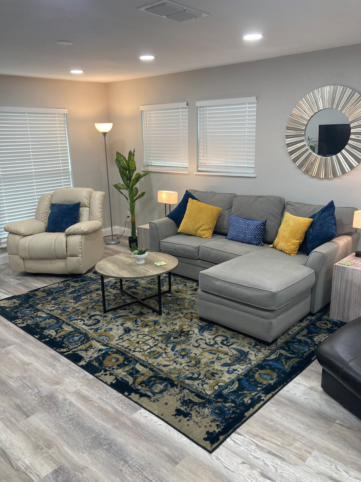 Bienvenido a tu propia casa de huéspedes privada con tu propia valla y puerta para perros para la comodidad de tus mascotas. Este estudio de 600 pies cuadrados combina el dormitorio con una cama de tamaño completo, escritorio, sala de estar y cocina abierta y el baño grande con vestidor separado por puertas. También tienes tu propia unidad de calefacción/aire acondicionado central para que puedas mantener la temperatura a tu gusto. También tendrás acceso a un refrigerador de tamaño completo y estacionamiento cubierto.