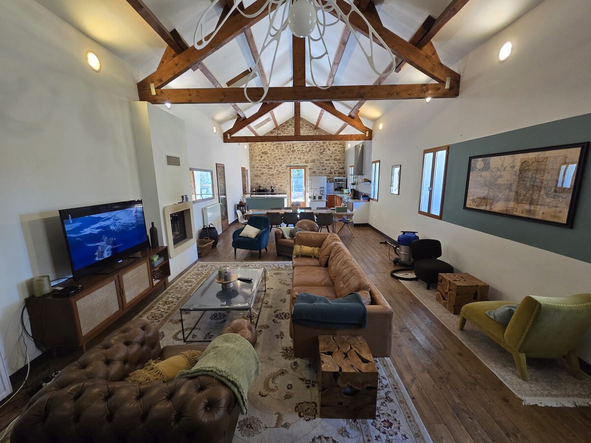 Se le dará la bienvenida en el corazón de la naturaleza preservada en un antiguo corral de ovejas renovado en alojamientos atípicos. Arriba hay una gran sala de estar de 70 m2 que consta de una sala de estar, una cocina equipada y una sala de estar. Más un aseo. En la planta baja 3 dormitorios, uno de ellos suite principal, un baño y un aseo separado. Podrá disfrutar en el exterior de una gran terraza con sombra natural, muebles de jardín, plancha y cancha de petanca.