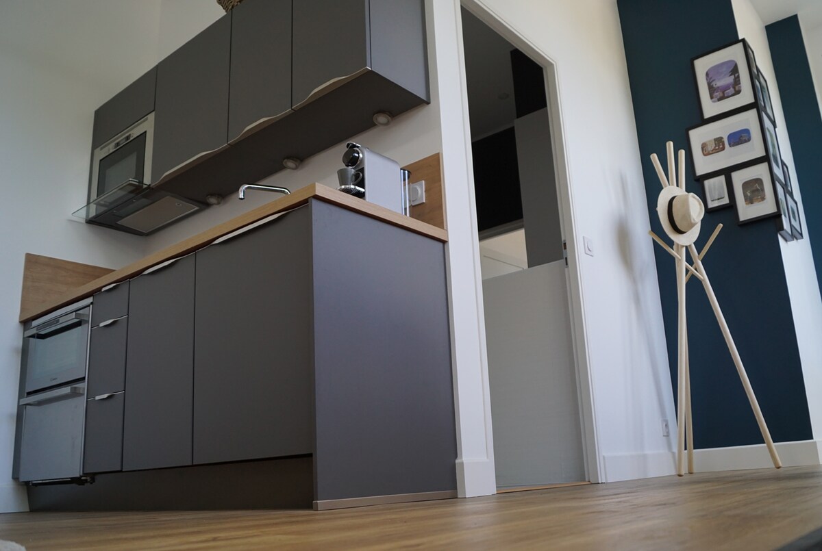 El «Cocoon» se encuentra en un edificio con encanto a dos pasos del castillo de Chantilly y del hipódromo, cerca de la estación de tren y de las tiendas. El apartamento está situado en el primer piso con vistas al patio. Podrá alojarse aquí, en el corazón de Chantilly con total tranquilidad disfrutando del ambiente de Cantilly, y de un confort de lujo. Podrá disfrutar de una cocina totalmente equipada con electrodomésticos nuevos, una sala de estar con TV inteligente y acceso wifi.