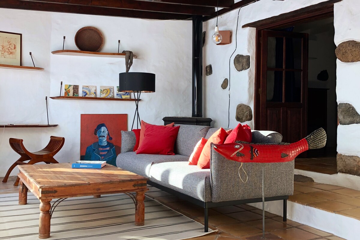 Ubicada dentro del conjunto histórico de la Villa de Teguise, (antigua capital de Lanzarote y actual referente cultural) esta preciosa casa-patio de finales del siglo XIX ha sido cuidadosamente restaurada conservando los valores originales de la arquitectura de Lanzarote combinando tradición y modernidad. Sus gruesos muros de piedra volcánica, suelos de barro y techos de madera crean espacios únicos donde la luz, los colores, las texturas y las obras de arte se convierten en protagonistas.