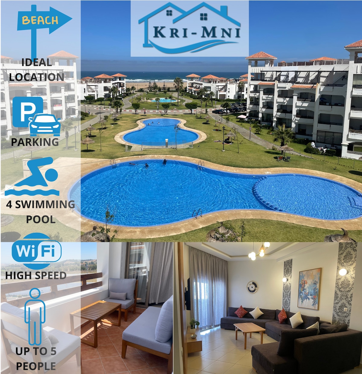 Beachfront Resort Flat with 4 Pools 20 Min Tangier