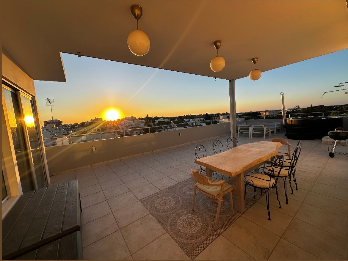 Disfruta de este penthouse de diseño elegante con las mejores vistas de Larnaca. Despiértate con un amanecer mediterráneo y termina el día con una puesta de sol roja sobre el lago de Salt Lake y las montañas. Amplio, decorado a la moda, con una enorme terraza en la azotea y balcones envolventes. 3 dormitorios maravillosos con camas de alta calidad, wifi rápido, estacionamiento gratuito y una bañera de hidromasaje. A solo 2 minutos de cafés, panaderías, tabernas y tiendas: privacidad, lujo y vistas impresionantes, todo en uno. Serán unas vacaciones inolvidables