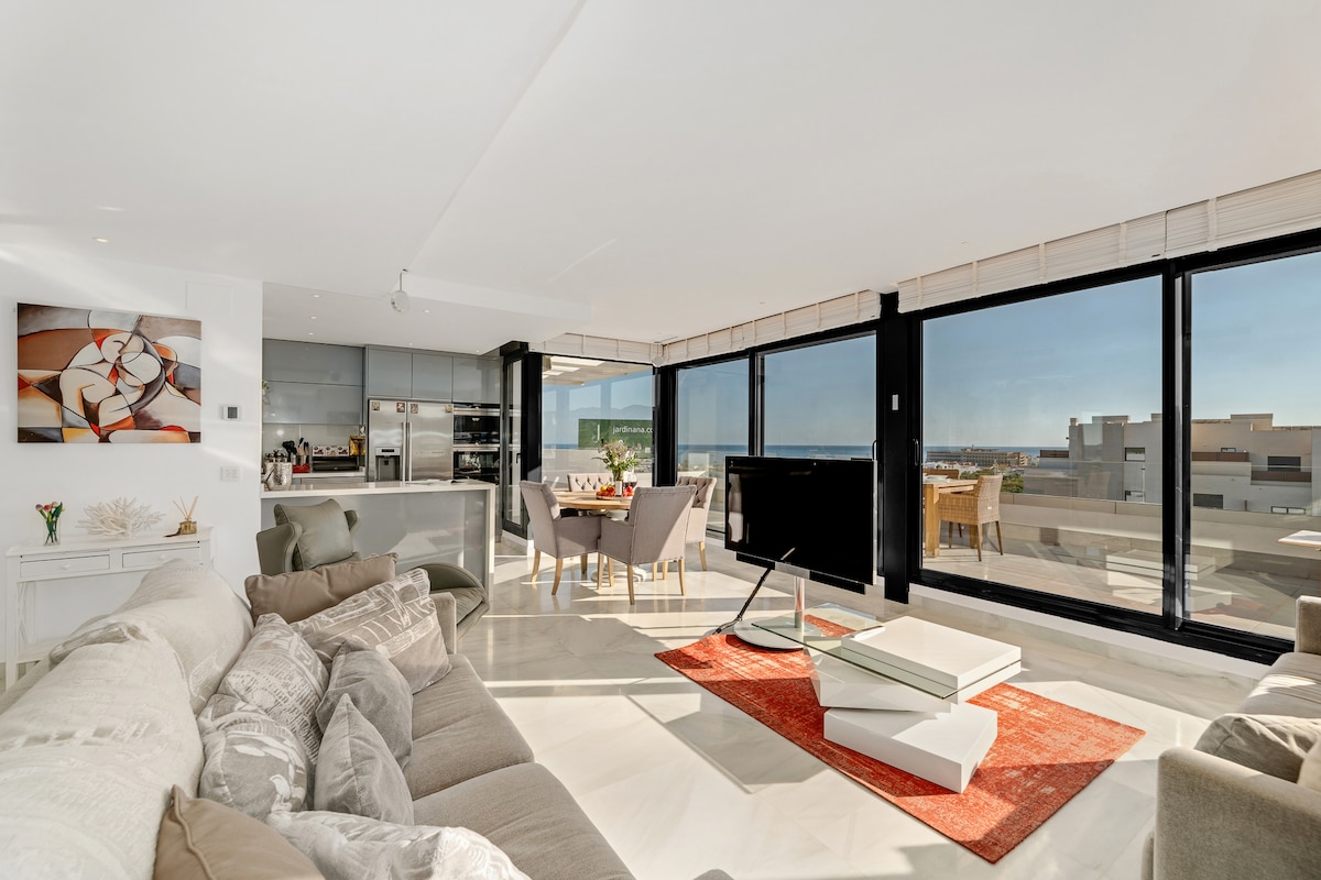 Wake up to breathtaking panoramic sea views in this stylish 3-bedroom, 3-bathroom luxury retreat in Las Lagunas de Mijas. Just steps from the beach, this modern sanctuary offers an expansive terrace, a sleek open-concept living space, and resort-style amenities for the ultimate Costa del Sol getaway. ✔ Spectacular ocean & mountain views from the living area & bedrooms ✔ Resort-style pool, sauna & free gym ✔ Fully equipped kitchen & spacious dining area ✔ Private terrace ✔ Fast Wi-Fi & SmartTV