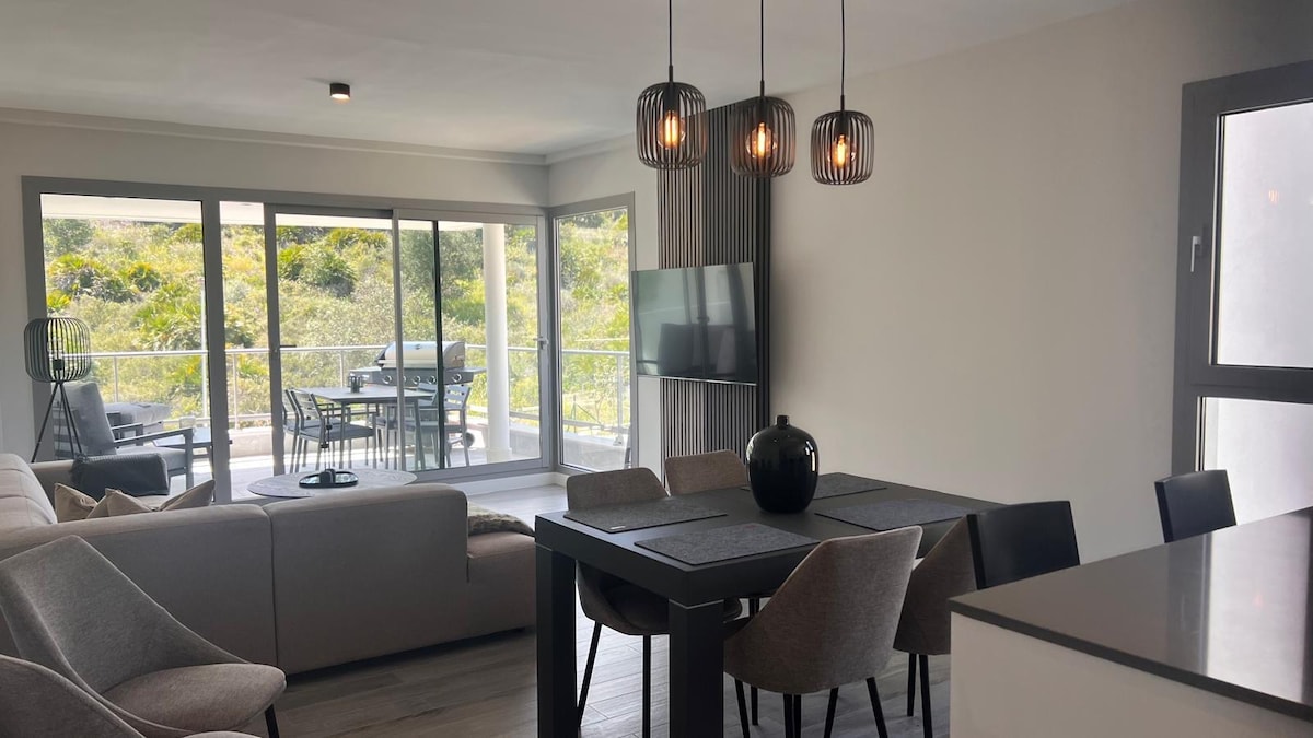 Wake up to breathtaking panoramic sea views in this stylish 3-bedroom, 3-bathroom luxury retreat in Las Lagunas de Mijas. Just steps from the beach, this modern sanctuary offers an expansive terrace, a sleek open-concept living space, and resort-style amenities for the ultimate Costa del Sol getaway. ✔ Spectacular ocean & mountain views from the living area & bedrooms ✔ Resort-style pool, sauna & free gym ✔ Fully equipped kitchen & spacious dining area ✔ Private terrace ✔ Fast Wi-Fi & SmartTV