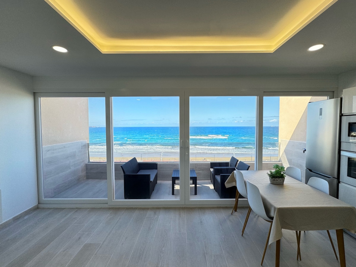 Disfruta de las vistas de este alojamiento muy céntrico y recien reformado. Muy bien situado en un complejo turistico. Está a 2 minutos de las playas y de la avenida principal, donde hay un gran paseo peatonal y carril bicis. Hay restaurantes, bares y tiendas muy cercanos a menos de 1 minuto. Parada de autobus a 1 minuto y supermecados. En una segunda planta sin ascensor. Actualización de la ducha (más amplia y de mayor calidad) y del colchón.