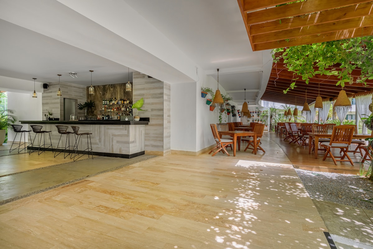 Disfruta estilo y sofisticación en Mangoi 1, un apartamento ubicado en el corazón de Las Terrenas, con la playa cruzando la calle y a pasos de tiendas, entretención, restaurantes y vida nocturna. Con la conveniencia adicional de un servicio de limpieza cada dos días, este apartamento es un lugar perfecto para familias o grupos de amigos que buscan una hermosa y conveniente escapada en un paraiso Caribeño