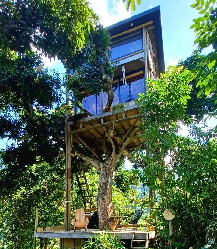 Casa del árbol bohemia y elegante con vistas mágicas