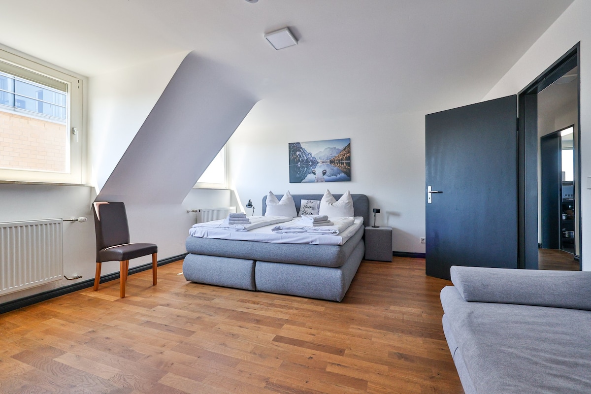 Ático de 4 habitaciones recién renovado (11/2025) frente a la estación central de Karlsruhe. Baño luminoso con bañera, WC separado, cocina bien equipada con zona de comedor y vistas verdes. Balcones franceses con vistas a la ciudad y a las montañas del Palatinado. Ideal para familias, grupos, escapadas urbanas y viajes de trabajo. Estricto alojamiento no fumadores (interior y balcón, limpieza extra). Depósito con tarjeta (250–1.000 €) en casos puntuales.