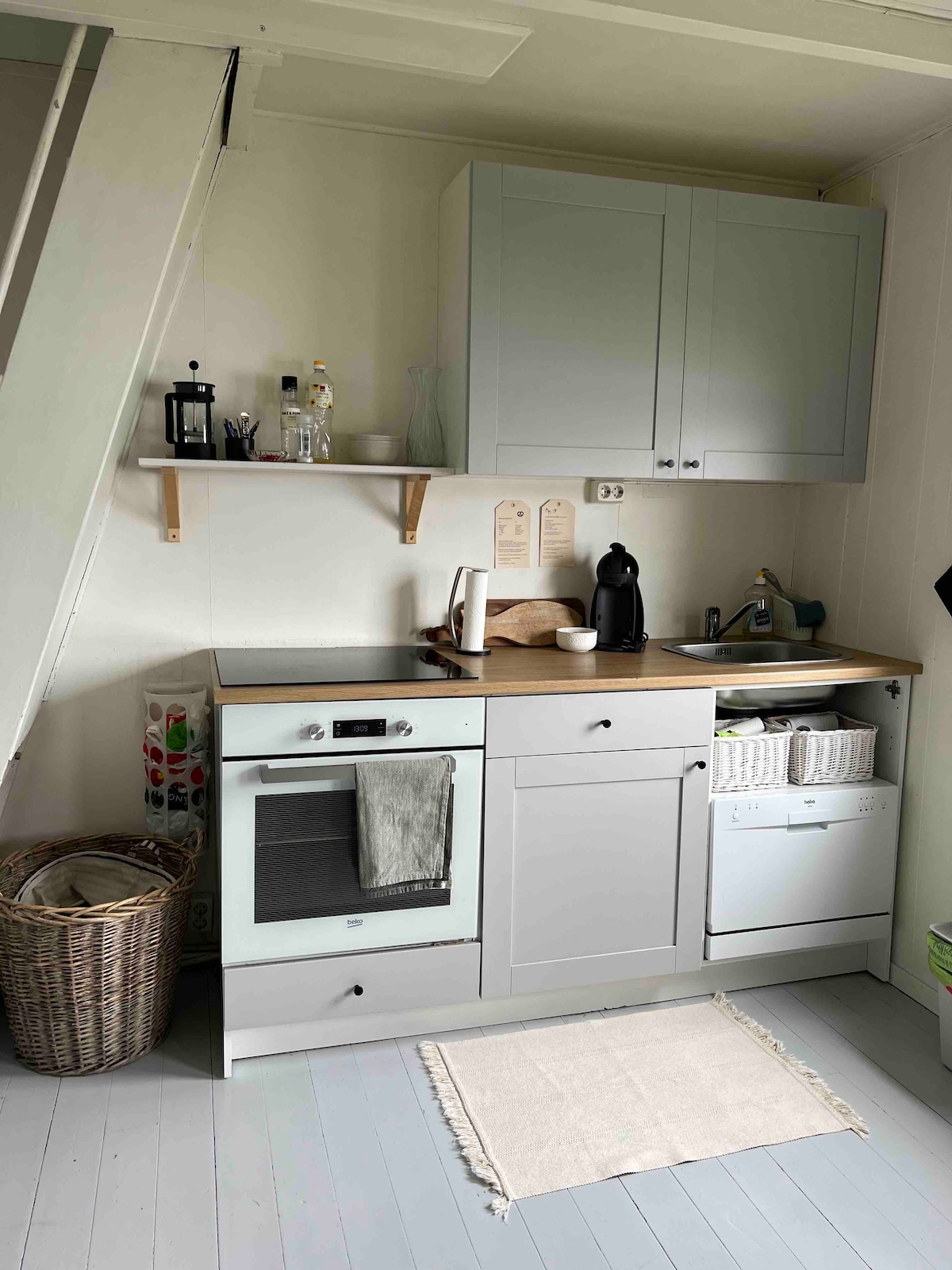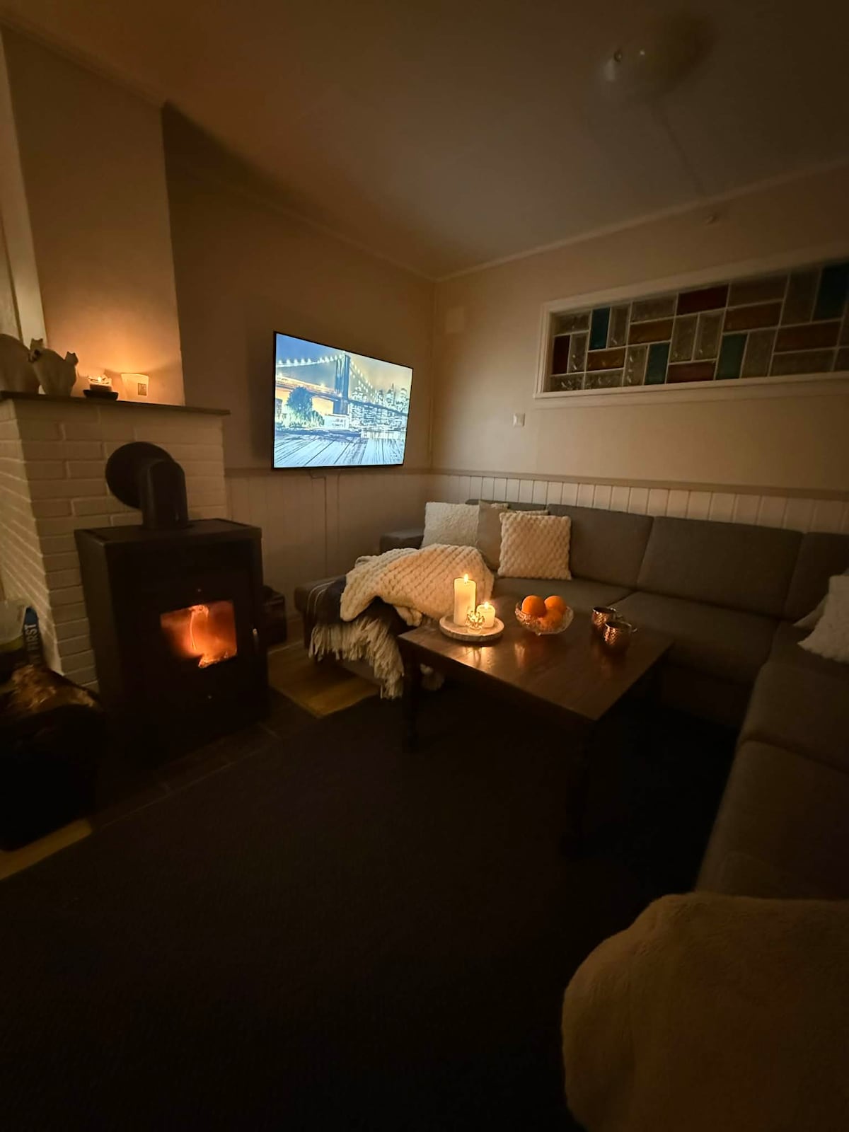 Nyoppusset hoveddel i kårhus som ligger skjermet til på gården, med en herlig utsikt over Verdal og Trondheimsfjorden. Det er perfekt for to, og med de to gjestesengene er det plass til å ha med flere. Det er hester på gården som kan sees fra huset. Trivsel her med hele familien, ingen trafikk forbi huset. Ønsker dere overnatting for fler enn fire, er det mulig å leie en hybel i tillegg. Muligheter for å leie stallplass til hest ved behov. Nærhet til E6 (3,6km), Verdalsøra (3,9km) og Stiklestad