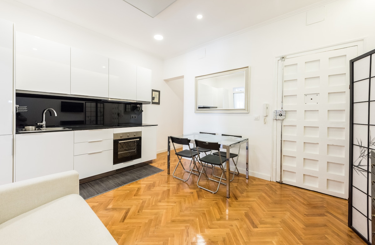 Elegante apartamento tipo loft en el corazón de la ciudad, a pocos metros de la emblemática Puerta del Sol, la Plaza Mayor, El Rastro y otras importantes atracciones turísticas. Cuenta con todas las comodidades: cama king size (180x200 cm), WIFI, Smart TV y cocina totalmente equipada. Muy bien comunicado, con dos líneas de metro a menos de 5 minutos a pie. Gran variedad de restaurantes y locales de moda en la zona. Supermercado abierto 24 horas a 3 minutos a pie desde el apartamento.