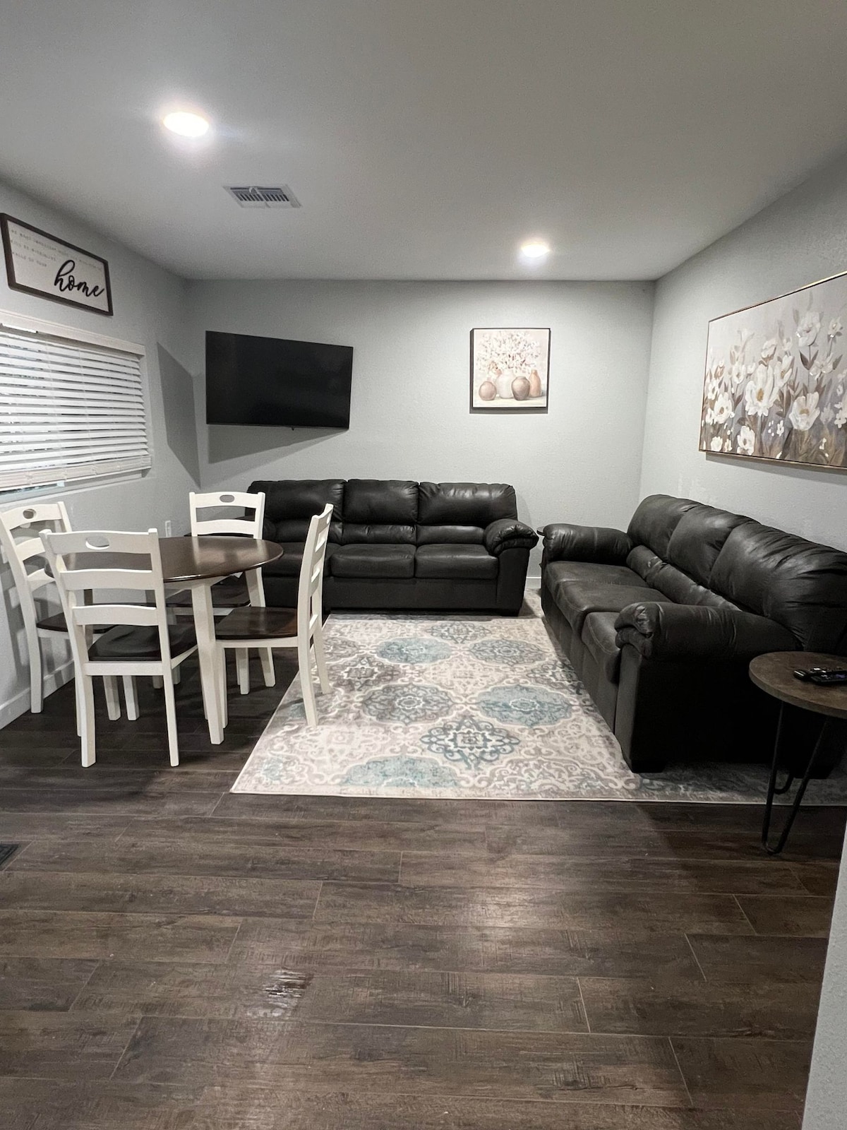 La casa tiene 2350 pies cuadrados. Tiene capacidad para 16 personas. Hemos aumentado la limpieza y desinfección, centrándonos en cualquier superficie que pueda haber tenido contacto. Creemos que nuestra casa es una alternativa viable y más segura que los hoteles, donde estás rodeado de muchas personas desconocidas. Nuestra casa también es una buena alternativa para estancias corporativas. Ocho camas, tres sofás y un corralito para bebés. Tenemos una cámara de timbre fuera de la puerta principal por motivos de seguridad... no hay cámaras dentro de la casa.