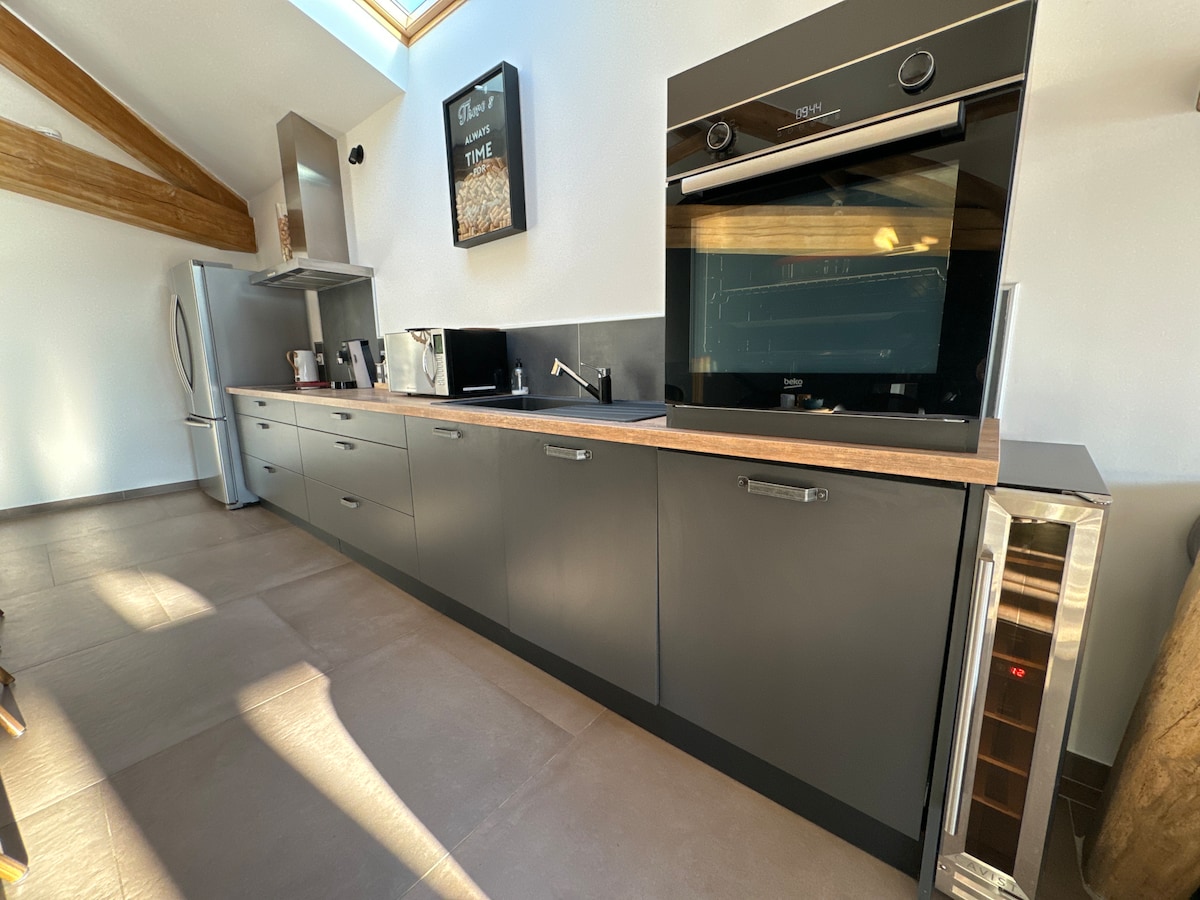 ¡Antiguo granero reformado con vistas a los Pirineos! En el centro de un pueblo tranquilo, venga a disfrutar de la tranquilidad de este alojamiento. Granero independiente, separado de nuestra casa y de otra casa , ¡compartirá el jardín y su magnífica piscina laguna! En la planta baja una habitación de 21 m2 con baño y aseo , con salida a la terraza con jacuzzi privado. Un garaje de 20 m2 da acceso a una escalera que conduce a la planta superior a la sala de estar y su terraza con vistas 🏔️