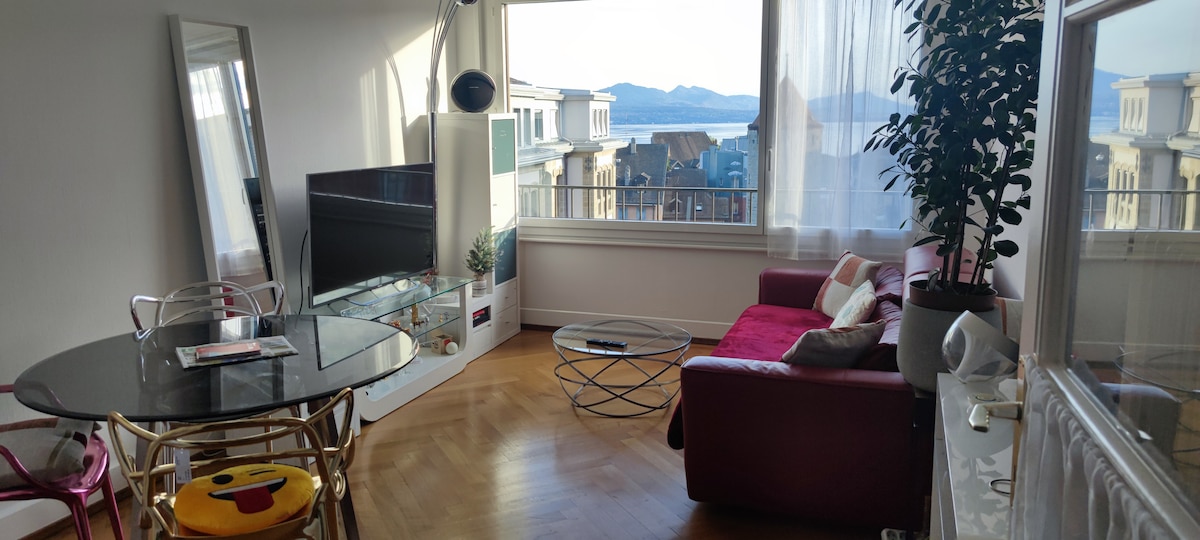Bonito apartamento de 2,5 habitaciones para 2 personas como máximo, en un pequeño edificio con carácter, techos altos, tranquilo. El departamento está en una zona privilegiada y cerca de todo: la estación de tren de Lausana (1 km), la playa de Bellerive (1 km), la tienda Migros (100 m), el parque de Milán y su jardín botánico (100 m). El departamento tiene una cama doble y un sofá cama convertible que permite dormir a 2 personas por separado. Hay una plaza de aparcamiento privada (máx. 4 m de largo) disponible.