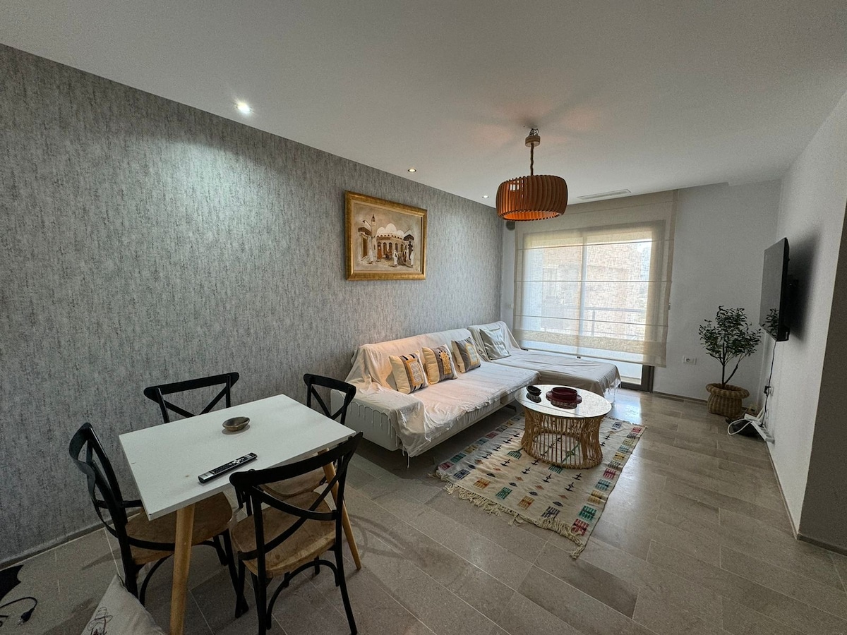 ✨ Appartement moderne ✨ Appartement confortable de 60 m² situé aux Jardins de Carthage le quartier le plus sécurisé de Tunis. 📍 À 10 min de l’aéroport, de la plage de la Marsa, de Sidi Bou Saïd et de Carthage. 🏡 Rez-de-chaussée, cosy 📶 Fibre haut débit 📺 Netflix ☕ Machine Nespresso 👖Machine à laver 🚗 Parking libre/safe devant la résidence ❄️Climatiseur / chauffage ☀️ 💤 Calme absolu 🔐 Arrivée autonome 🛎️ Concierge 24h/24 Idéal pour un séjour pratique, serein et agréable à Tunis