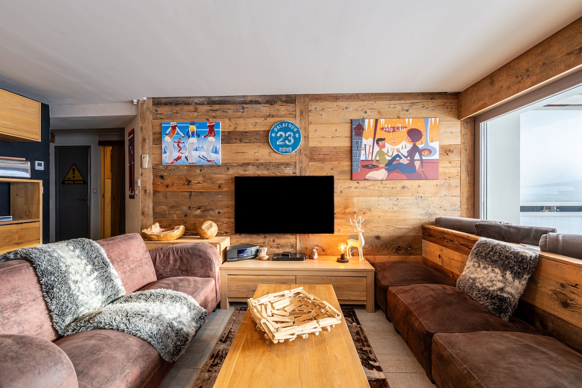 La escapada alpina redefinida: bienvenido a nuestro apartamento excepcional de 140 m2, completamente renovado y transformado para ofrecer un ambiente acogedor; Situado en Tignes le Lac, apreciará su salida con los esquís puestos, es el lugar ideal para todas sus aventuras. Este espacioso lugar de estilo chalet moderno ha sido diseñado para acomodar cómodamente hasta 12 personas y ofrecer a cada uno su espacio privado. Su ventaja única: SAUNA PRIVADA/Comida lista a su llegada