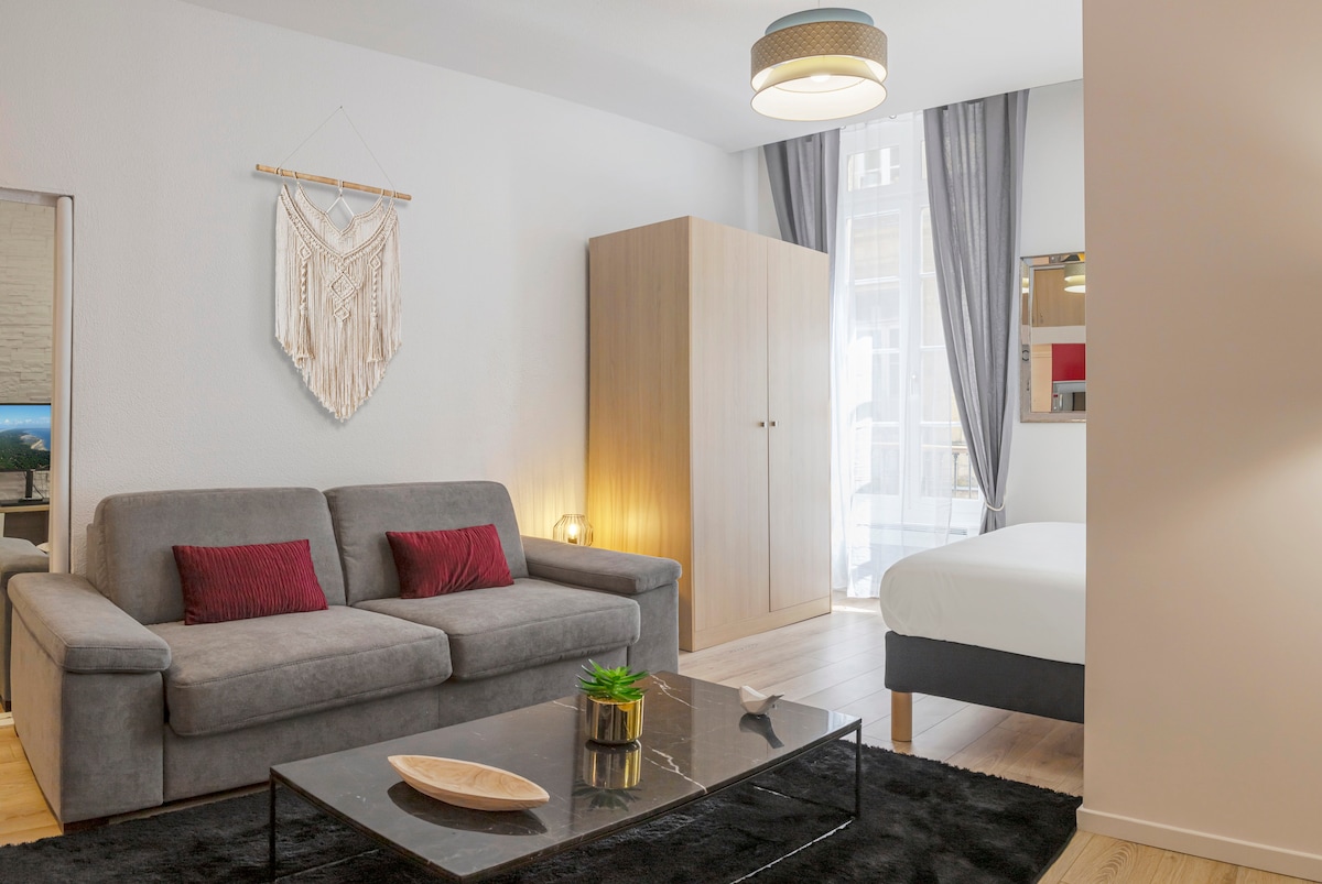 En el corazón de Burdeos, este espacioso T2 (52 m2) es el lugar ideal para descubrir Burdeos, su patrimonio y sus vibrantes vecindarios. En un hermoso edificio del XVIIIeme encontrarás la comodidad moderna con el encanto de los edificios antiguos. Los restaurantes y pubs en el lugar pueden ser ruidosos a pesar del doble acristalamiento. Sin llegada tardía