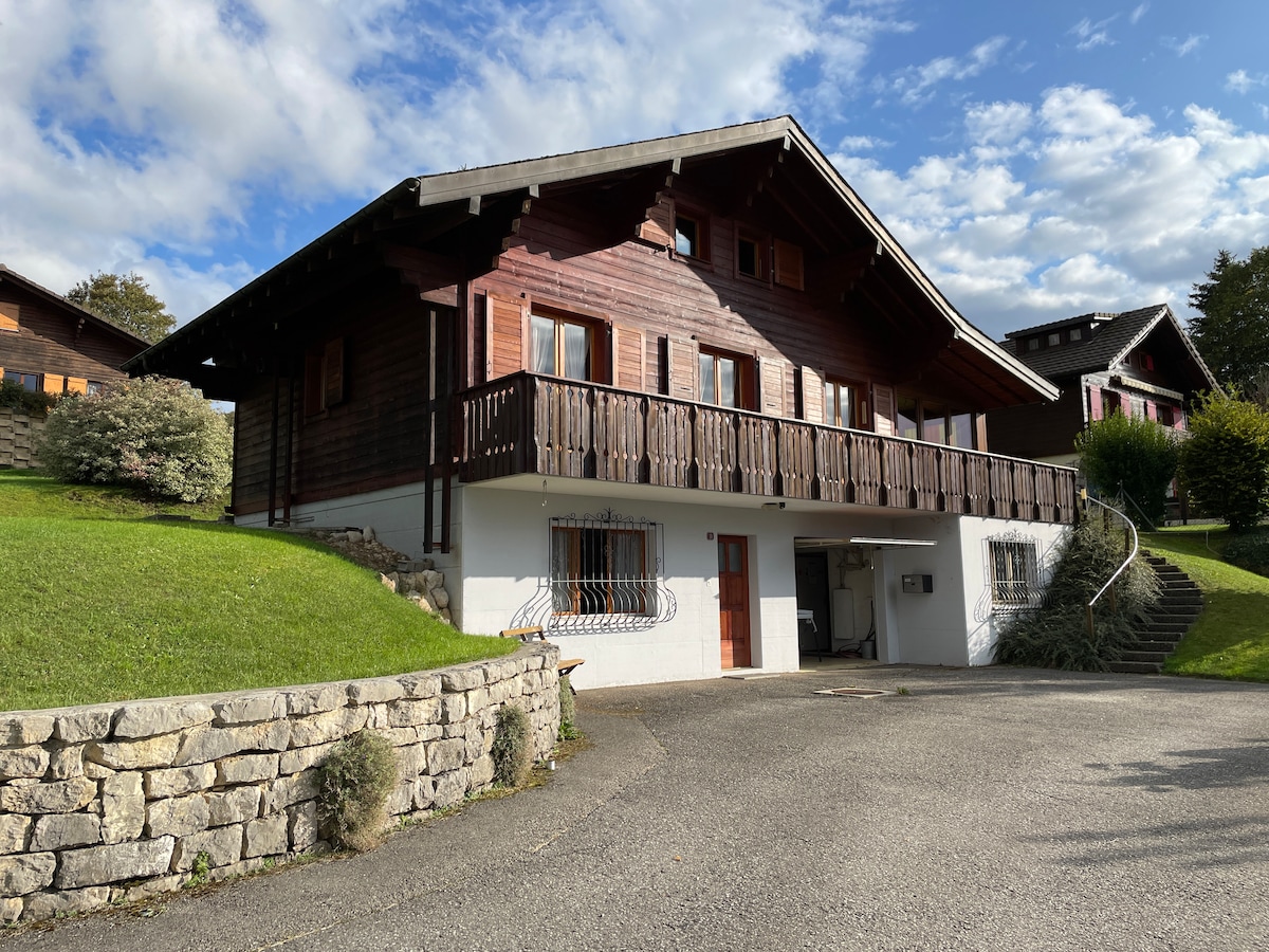 Cálido apartamento de 4 habitaciones dará la bienvenida a familias, parejas o amigos. Se admiten animales, tenemos un gato. En el segundo piso, bien equipado, chimenea de recreo, juegos de mesa, cómics, para pasar momentos agradables alrededor de raclette, fondue o barbacoa según la temporada. Acceso al amplio jardín compartido, juegos para niños, tumbonas ... Panadería, tienda de comestibles y estación de tren a 5 minutos. Muchas posibilidades de paseos y caminatas, acceso al lago en 20 minutos a pie o 5 minutos en auto. Tarjeta Valpass