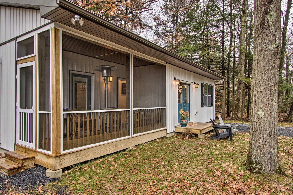 Acogedora cabaña en Poconos con terraza y chimenea
