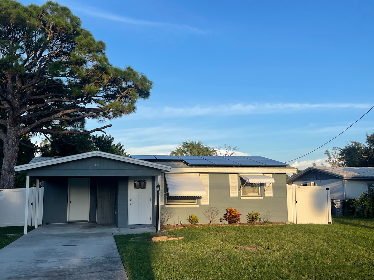 Alójate en una tranquila joya escondida lejos del bullicio de la ajetreada vida de la ciudad. ¡A solo 6 minutos (2 millas) en coche de Manasota Key Beach, una de las playas más populares para encontrar dientes de tiburón! Esta casa ha sido completamente renovada y recién amueblada. La cocina completa tiene tres grandes ventanas que permiten una preparación de la comida relajante y agradable con vistas al follaje exterior. La casa está configurada con sencillez para una estancia agradable y relajante.