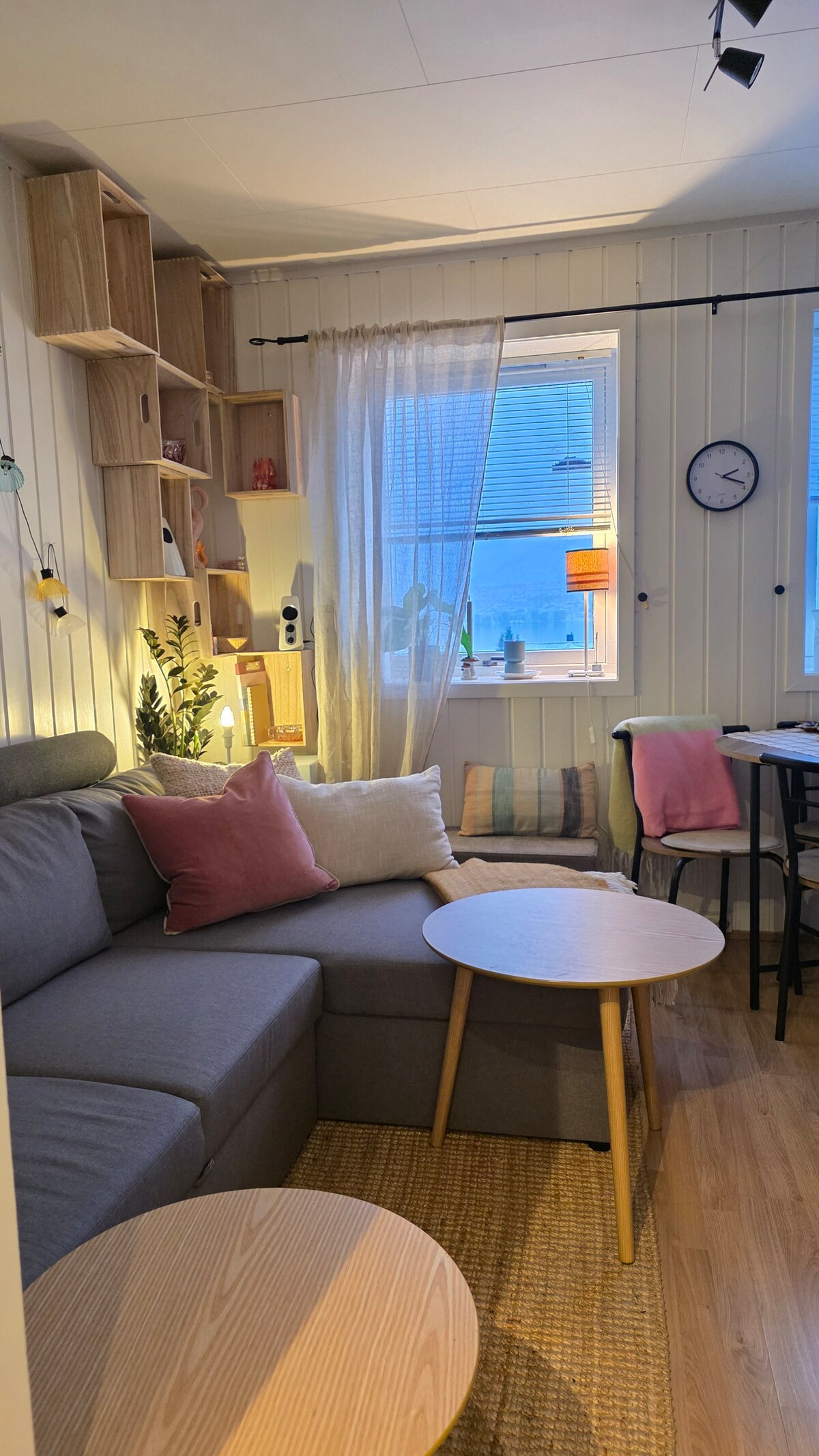 Todo incluido. Toalla, etc. Agua potable fresca y fría del grifo. 1 min a la parada de autobús. 5 min en autobús al centro de la ciudad. 15 minutos a pie del centro de la ciudad. Por acuerdo y tarifa de 300 NOK posibilidad de usar sauna con baño de nieve. Una cama doble de 120 metros de ancho y la otra de 140. Para reservas después del 24.11.25. Una comida de bacalao o una torta de pescado gratis, si lo desea, para estancias de más de tres días.