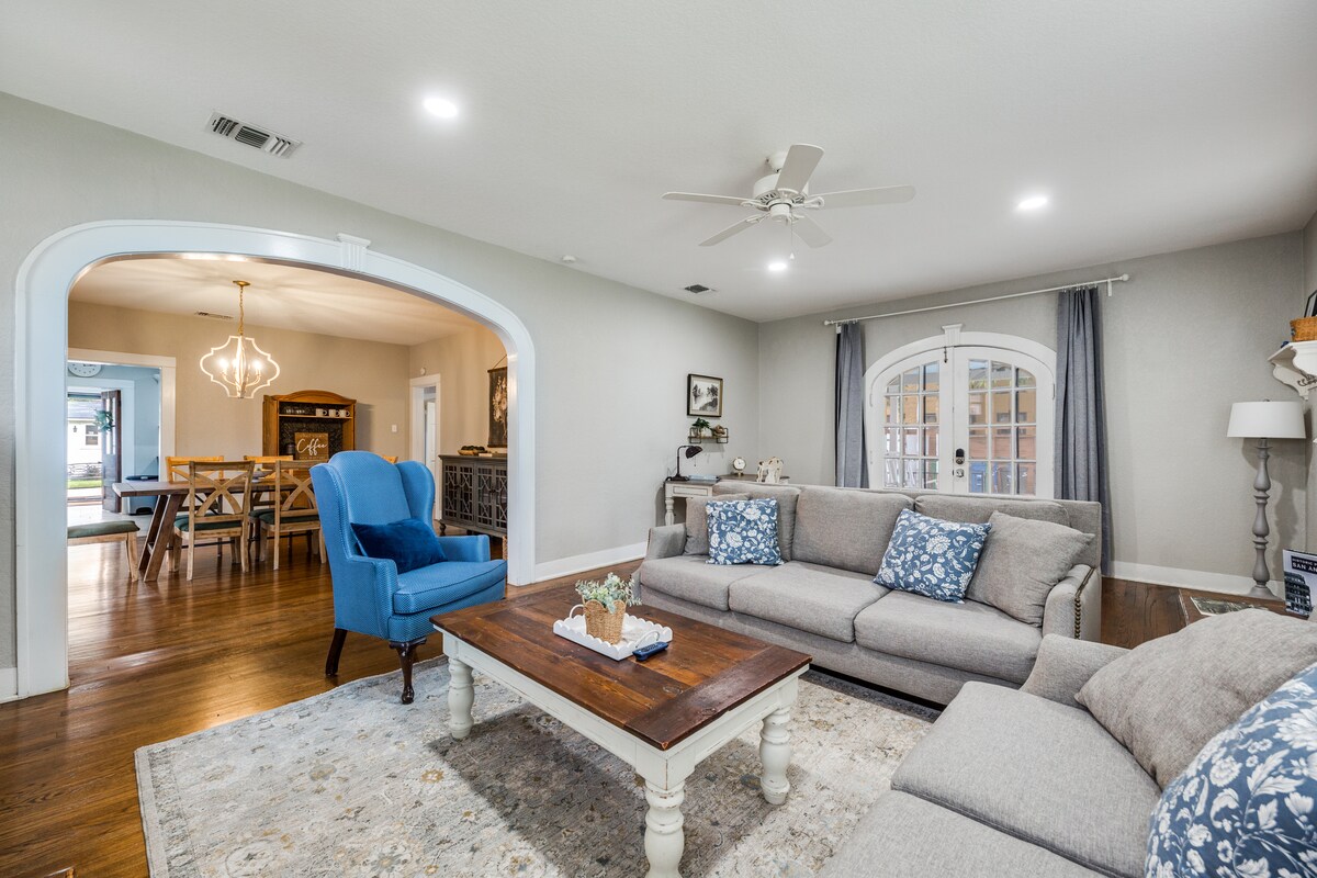 ¡Adéntrate en la historia en el corazón de la vibrante Southtown! Esta encantadora joya de 2 dormitorios te pone a pasos de cervecerías locales, restaurantes y el icónico Riverwalk. LO más destacable: Capacidad para 5 personas: 2 camas tamaño queen + 1 individual. Vibras de spa: ducha con efecto de lluvia. Cocina del chef: nueva placa de inducción y electrodomésticos completos. Oasis al aire libre: enorme patio cercado con fogata y sillas Adirondack. Máxima facilidad: 2 televisores inteligentes, lavadora/secadora y fácil acceso a la I-10. ¡Tu estancia perfecta en San Antonio comienza aquí!