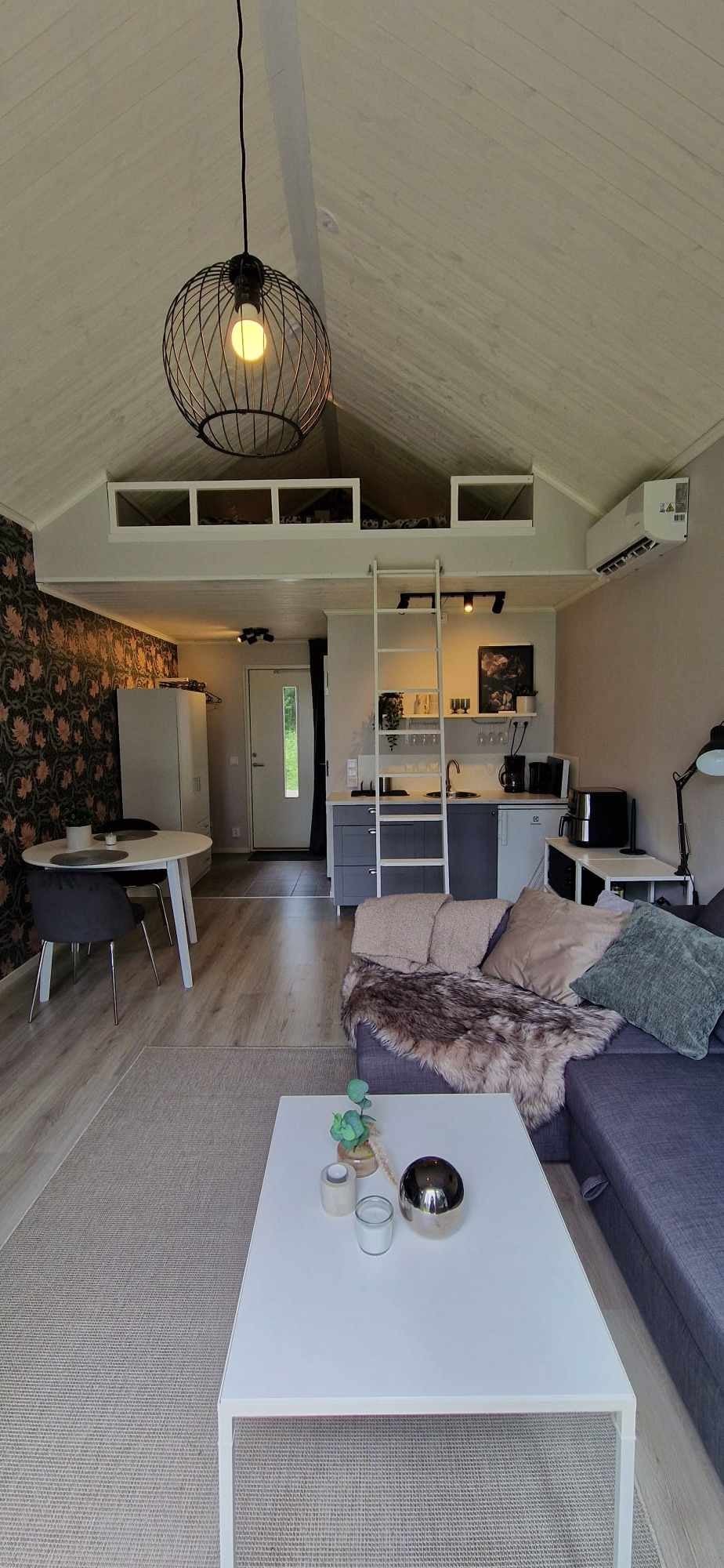 Bienvenido a una acogedora casa de huéspedes de nueva construcción. Se encuentra en una parcela con buenas vistas a los campos y cerca del bosque. Hay acceso a un gran jardín con muebles de exterior, parrilla Cama elástica, casa de juegos y zona de barbacoa en el bosque si se desea. Hay un baño muy bonito con ducha y WC. Hay una cocina Trinett con posibilidad de cocinar, nevera con congelador, cocina y comedor para 4-5 personas. El dormitorio pequeño tiene una amplia cama individual y una litera con escalera. Sofá cama en la habitación grande
