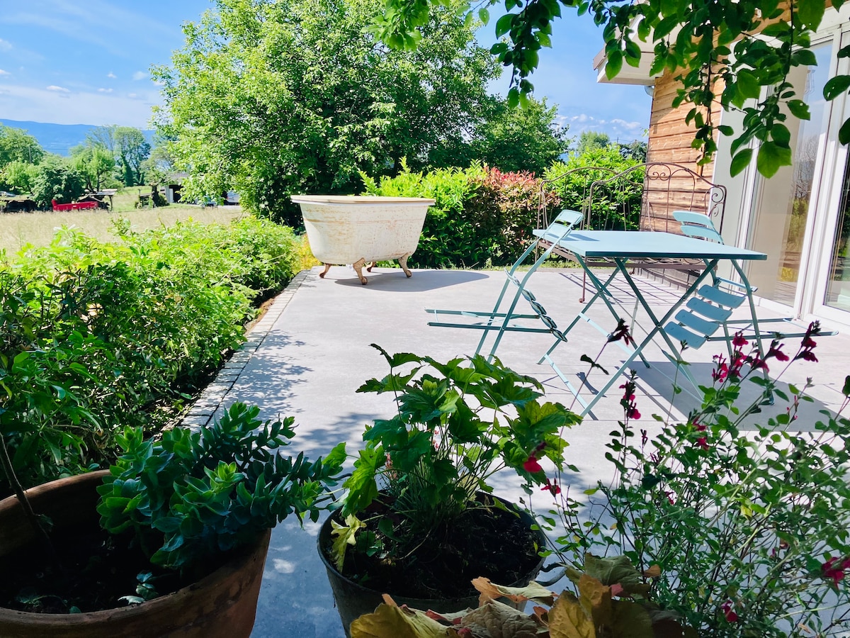 Le invito a una escala en plena naturaleza para tomarse el tiempo para reducir la velocidad y disfrutar de la dulzura de las orillas del lago Lemán en un entorno privilegiado rodeado de bosques y un hermoso estanque. Es en este entorno del «Newbonheur Garden» donde se encuentra este agradable estudio acogedor que he redecorado por completo con cuidado para que pueda disfrutar de una escapada agradable. Novedad 2024: ¡Un SPA exterior con vistas al estanque opcional!