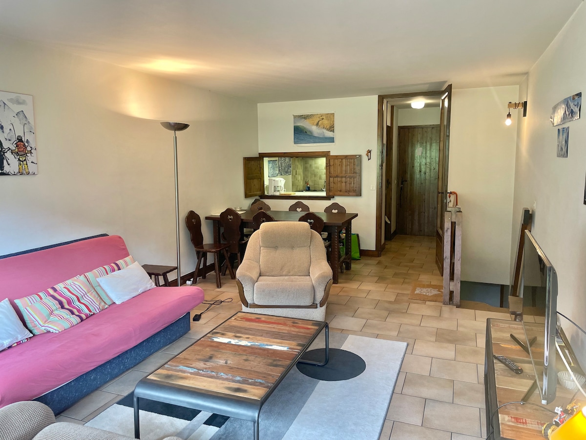Apartamento de dos habitaciones idealmente situado en una calle tranquila en el corazón del pueblo de Saint Gervais Les Bains. Está cerca de todos los servicios, como la oficina de turismo y la escuela de esquí. El servicio de transporte gratuito al telecabina Le Bettex está justo al final de la carretera. Con una superficie de 39 m2, puede alojar hasta 2 adultos y 2 niños o 3 adultos (ya que el tamaño del colchón del sofá cama es de 140 cm*180 cm). El apartamento también tiene un armario para esquís.