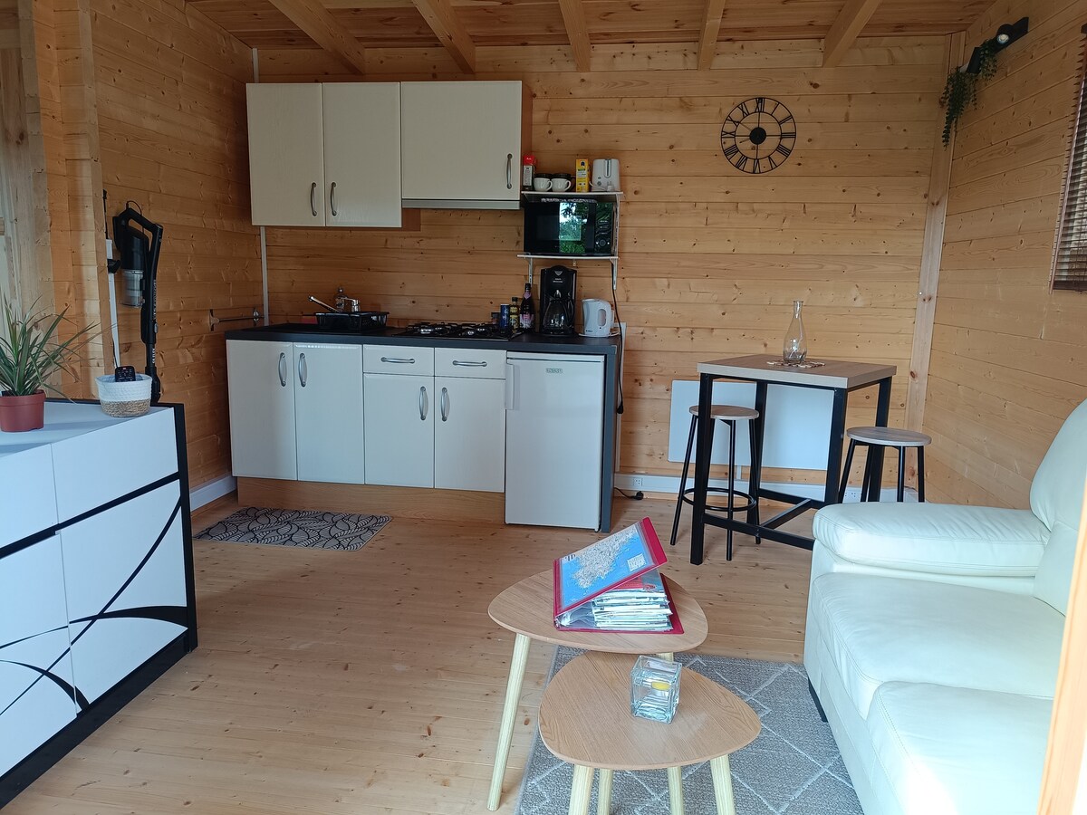 Entre la tierra y el mar, acogedora cabaña de 44 m2 con todas las comodidades.