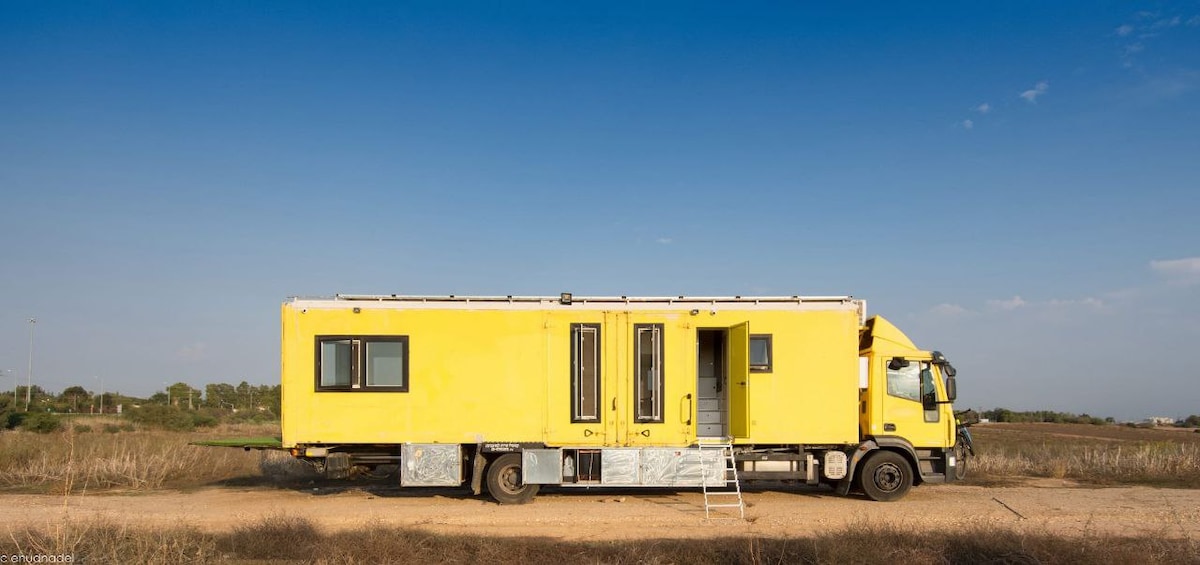 Una casa camión adecuada solo para los amantes de la naturaleza, situada en la zona de Yavneel, a veinte minutos del Kinneret y el río Jordán. Llegada a un camino de tierra transitable para coches. Dos camas dobles: una de 1,40 y la otra una cama de galería de 1,60. En invierno, el camión se calienta desde una chimenea de gas, en verano se enfría con dos aparatos de aire acondicionado. Dado que la electricidad solar se puede activar por la noche en un modo de refrigeración ecológica, es posible que no funcionen toda la noche. En la cocina: horno, cocina, nevera, lavavajillas, mesa de comedor (oculta en las fotos) y rincón de té y café. El agua caliente de la ducha funciona con gas. En el exterior hay una zona de estar hecha de madera Shita y en verano una piscina de 2 por 3 metros bajo una sombra.