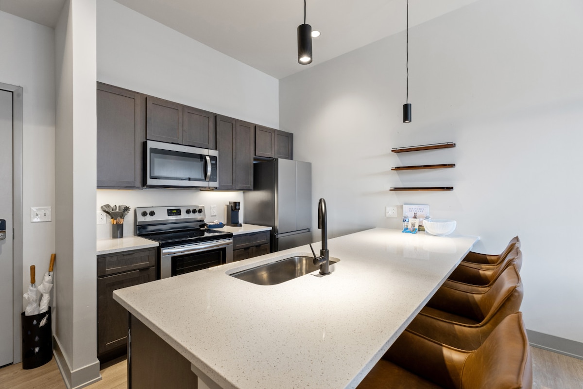Este apartamento es un lugar perfecto para ver un partido del Reino Unido, pasar un fin de semana en Keeneland o hacer un viaje de negocios rápido. Este apartamento cuenta con una cocina de concepto abierto y sala de estar. El dormitorio se conecta a un baño principal con hermosas encimeras y accesorios. Simplemente cierra las puertas del establo para tener privacidad desde la sala de estar. También cuenta con electrodomésticos nuevos de acero inoxidable, encimeras de granito, ducha de mármol cultivado, lavadora/secadora y aparcamiento conveniente. A 1,8 millas del Red Mile Casino y a 2,5 millas de Rupp.