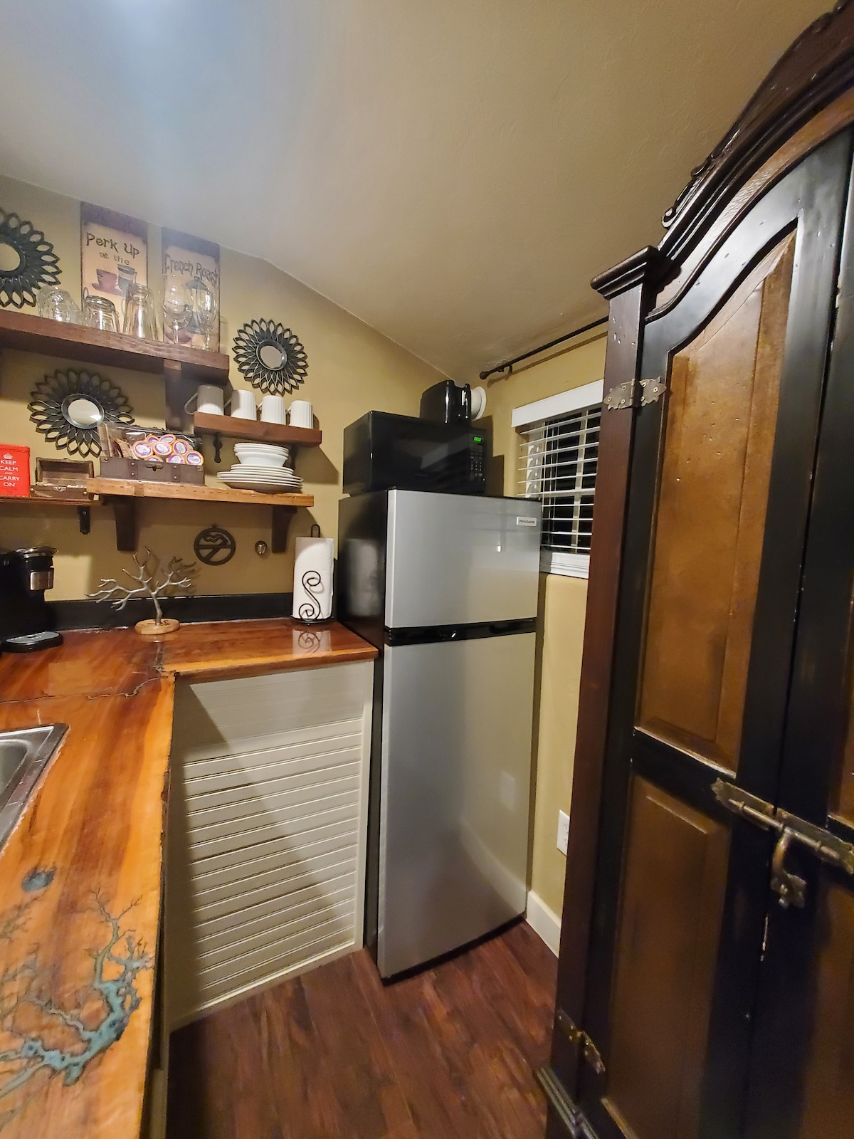 Sage Cottage se encuentra en el hermoso condado de Pottawatomie, en nuestro propio bosque de Oaklore. La casa tiene capacidad para dos personas en nuestra cama tamaño queen. Tiene una minicocina y un baño de 3 piezas con ducha. La cocina está equipada con un pequeño fregadero de barra, placa calefactora doble, tostadora, microondas, cafetera, kuerig, horno tostador, nevera pequeña y utensilios básicos de cocina. ¡Hay una mesa de bistró, una mesa de picnic, una parrilla y una mesa de desayuno en el interior! Wifi gratuito, jacuzzi abierto todo el año, albornoces, ver «otros aspectos destacables».
