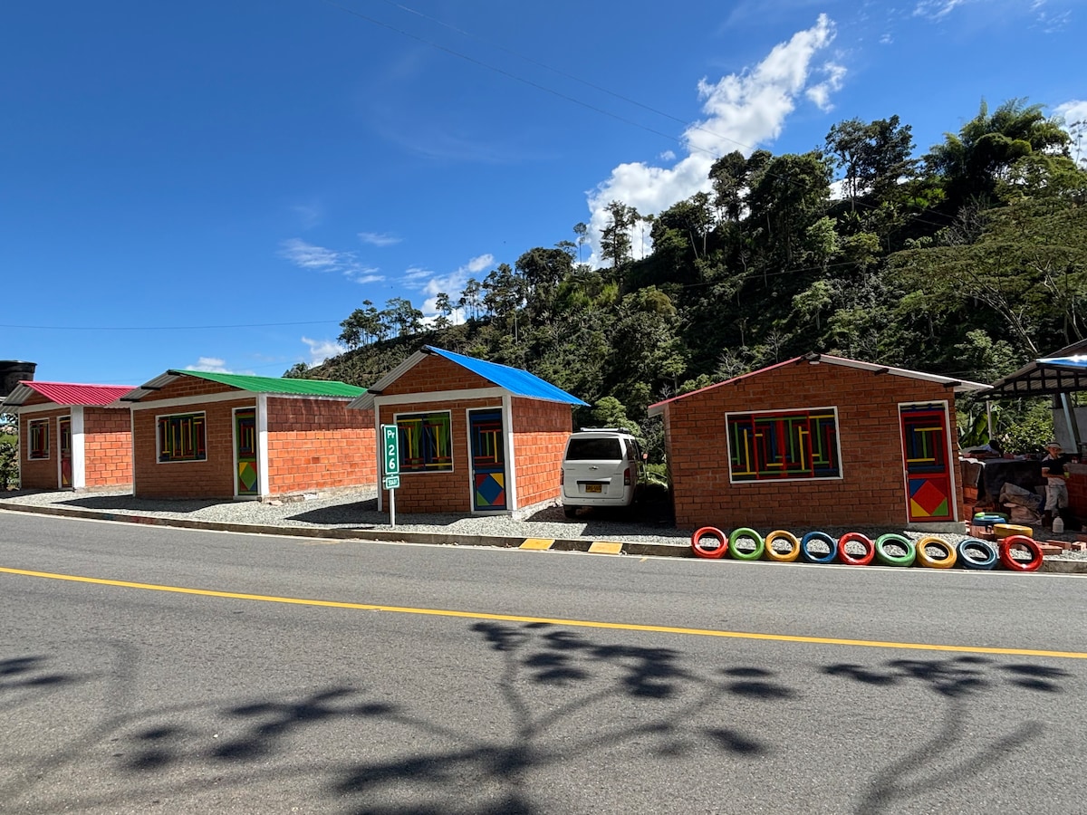 Disfruta de la naturaleza, te ofrecemos 4 cabañas con capacidad para 10 personas cada una; cascadas, termales, lagunas, ríos, ganadería, avistamiento de aves , el lugar ideal para descansar y desconectarse del trabajo, contamos con servicio a la habitación, somos Petfriendly , todas nuestras cabañas son privadas con balcón con vista al volcán nevado del Ruiz. Los esperamos