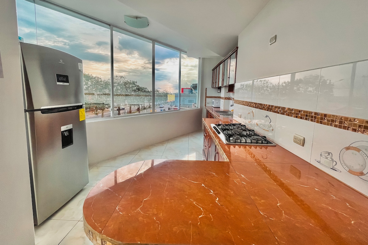 Diviértete con toda la familia en este alojamiento con estilo elegante y moderno con domótica en toda su casa, lugar céntrico a 5 minutos caminando encuentras KFC,Gran Aki,Tuti,Farmacias, Supermecados, etc.. 🛏️ 1 habitación con cama de 2 plazas y media 🚿 Baño privado. 🍳 Cocina equipada con lo esencial para preparar tus alimentos. 📶 WiFi de alta velocidad. ❄️ Aire acondicionado. 📺TV con acceso a Netflix. 🧊Refrigedor. 🚗 Estacionamiento Y muchas cosas más
