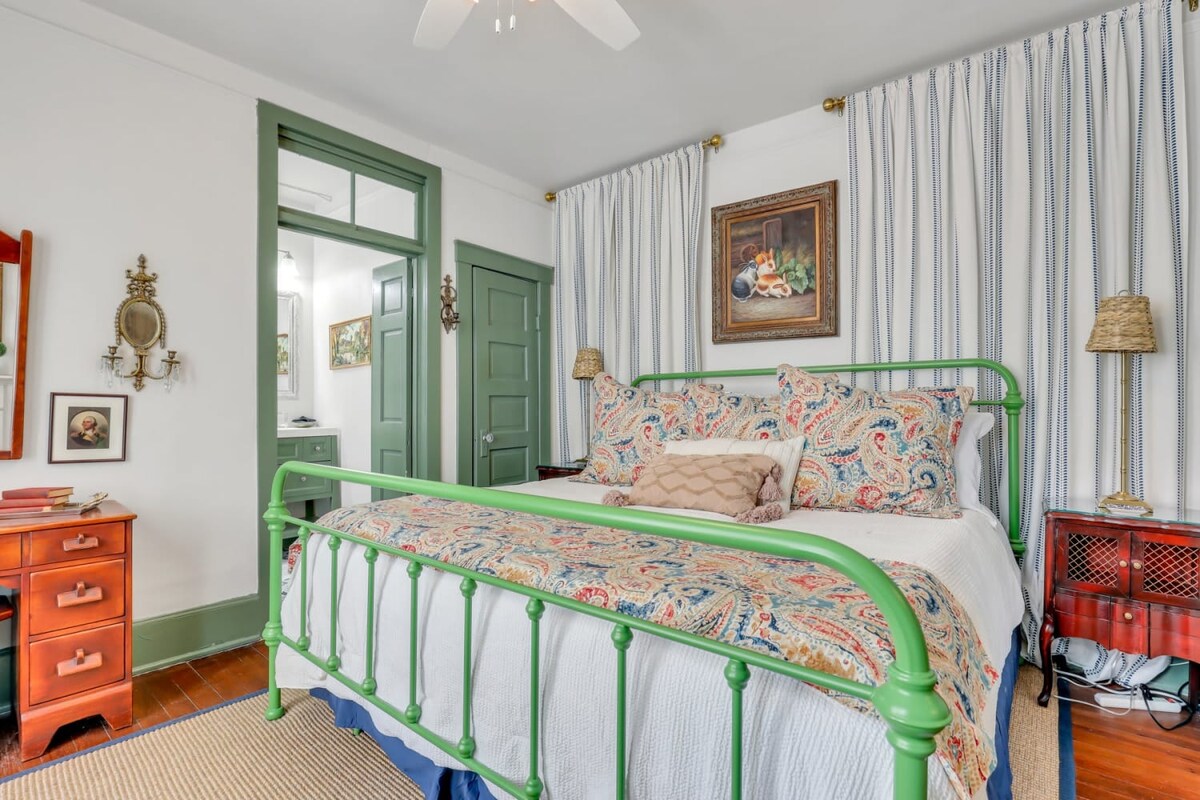 Construido en 1892, este apartamento renovado combina el encanto histórico con las comodidades modernas. Relájate en la bañera de hidromasaje, desconecta en el patio privado con acceso a barbacoa y disfruta de una piscina compartida (no climatizada). A pocos pasos de Forsyth Park y a pocos pasos de restaurantes, cafeterías y tiendas. Duerme profundamente en una acogedora cama tamaño king o estírate en el sofá cama tamaño queen. Cocina totalmente equipada y baño de lujo con artículos de aseo. Amplio aparcamiento gratuito en la calle y transporte público cercano. ¡Estaremos encantados de compartir contigo consejos sobre restaurantes locales!