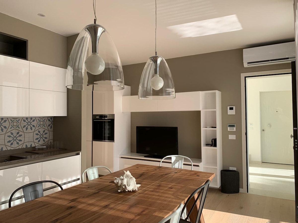La casa es muy luminosa gracias a las grandes vidrieras y tiene medida generosa Compuesta por: 1 amplia entrada 1 sala open space con cocina de nivel 1 espaciosa Suites 2 dormitorios con dos camas individuales 2 fantásticos baños con ducha de lujo,acabados de alta calidad 1 espacioso patio con zona de relax Gracias a su posición estratégica es posible llegar al centro de la ciudad (Piazza Mazzini) y caminar hasta el mar en dos pasos, también el parque acuático Caribe Bay es fácilmente accesible