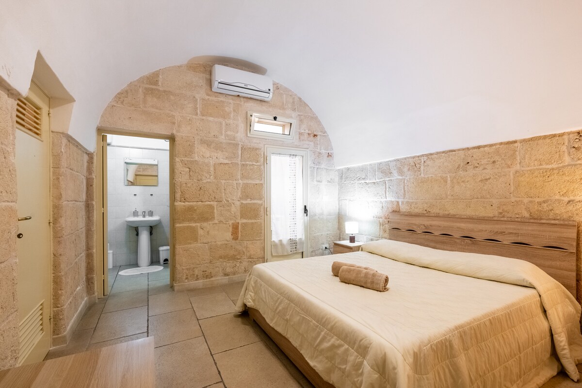 En el encantador campo de Monopoli, nuestra suite de huéspedes se encuentra en una villa renovada del siglo XVII. Ofrece acceso a un patio privado con bañera de hidromasaje, y una terraza privada con vistas panorámicas a olivares centenarios. Ideal para parejas que buscan tranquilidad y una escapada inolvidable. Puedes explorar la propiedad de 6 hectáreas en una ruta interna de 2 km. El centro de Monopoli está a 5,6 km, las playas están a 3 km. Se recomienda un vehículo privado.