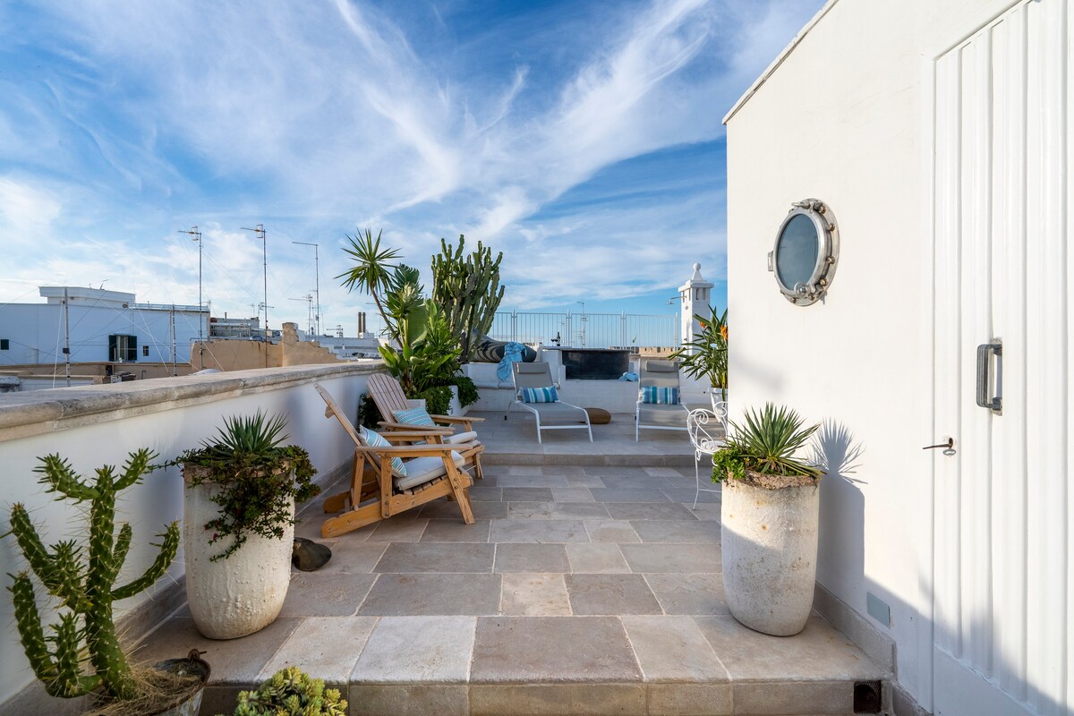 CIS: BR07401291000000188 CIF: IT074012B400033730 Vive la mágica sensación de encontrarte entre el pasado y el presente: ¡es una casa histórica! Los suelos de época y las paredes de piedra son el telón de fondo de un entorno amueblado con objetos de diseño, cerámicas antiguas y muebles locales. La gran terraza privada, con solárium y ducha caliente, te entusiasmará: podrás relajarte con una copa de vino al atardecer, disfrutar del sol en cómodas tumbonas o preparar una cena en un ambiente mágico de Apulia.